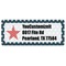 This design is a dark blue, bright red, and cream. The top half is white stars and a dark blue background, while the bottom half is a red and cream diagonal striped background. The backgrounds are divided by a cream ribbon and frame with your personalization in the middle. Have fun decorating with this classic patriotic design.