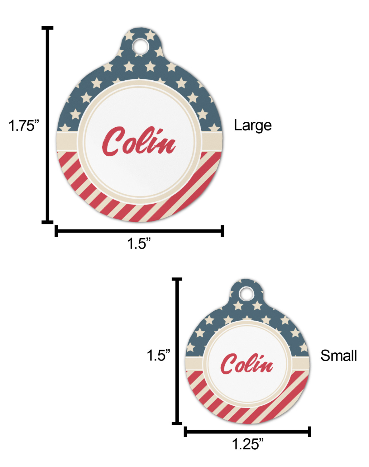The sturdy, rounded, aluminum tags are available in 2 sizes.