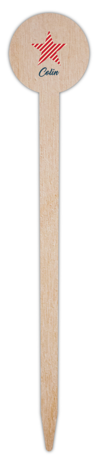 This design is a dark blue, bright red, and cream. The top half is white stars and a dark blue background, while the bottom half is a red and cream diagonal striped background. The backgrounds are divided by a cream ribbon and frame with your personalization in the middle. Have fun decorating with this classic patriotic design.