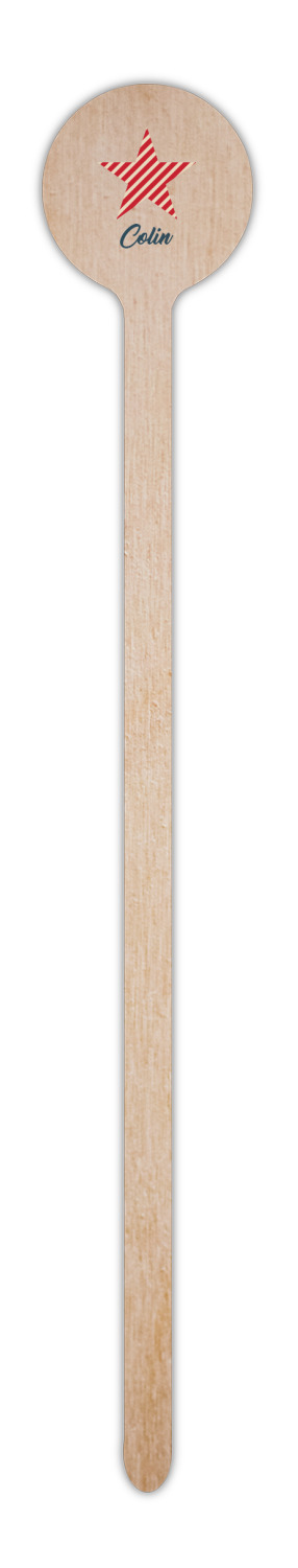 This design is a dark blue, bright red, and cream. The top half is white stars and a dark blue background, while the bottom half is a red and cream diagonal striped background. The backgrounds are divided by a cream ribbon and frame with your personalization in the middle. Have fun decorating with this classic patriotic design.