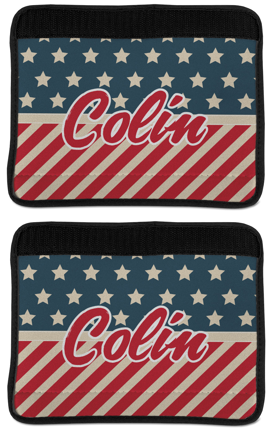 Made from neoprene, our seat belt strap covers wrap around the belt itself and have a Velcro tab for easy attachment and closure. The belt's edges are trimmed with a black polyester for a secure finish. Each cover is 9.5 by 7 inches when open and 9.5 by 2.5 inches when closed. We print your personalized design on the face of the seat belt pad.