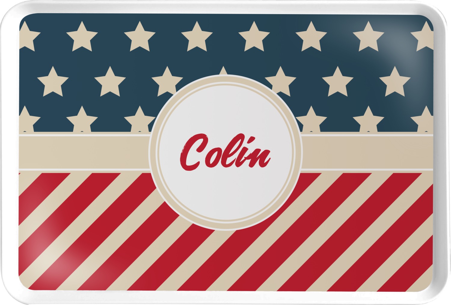 Made from a heavy melamine, these decorative trays are break resistant and are BPA free. At 14" x 9.25", these serving dishes are spacious enough to accommodate several drinks, bowls, or more. The tray features ridges underneath that allow for a sturdy stance upon any table or counter-top. We display your customization at the bottom of the tray's interior, while the remaining sides of the tray are a chic white.