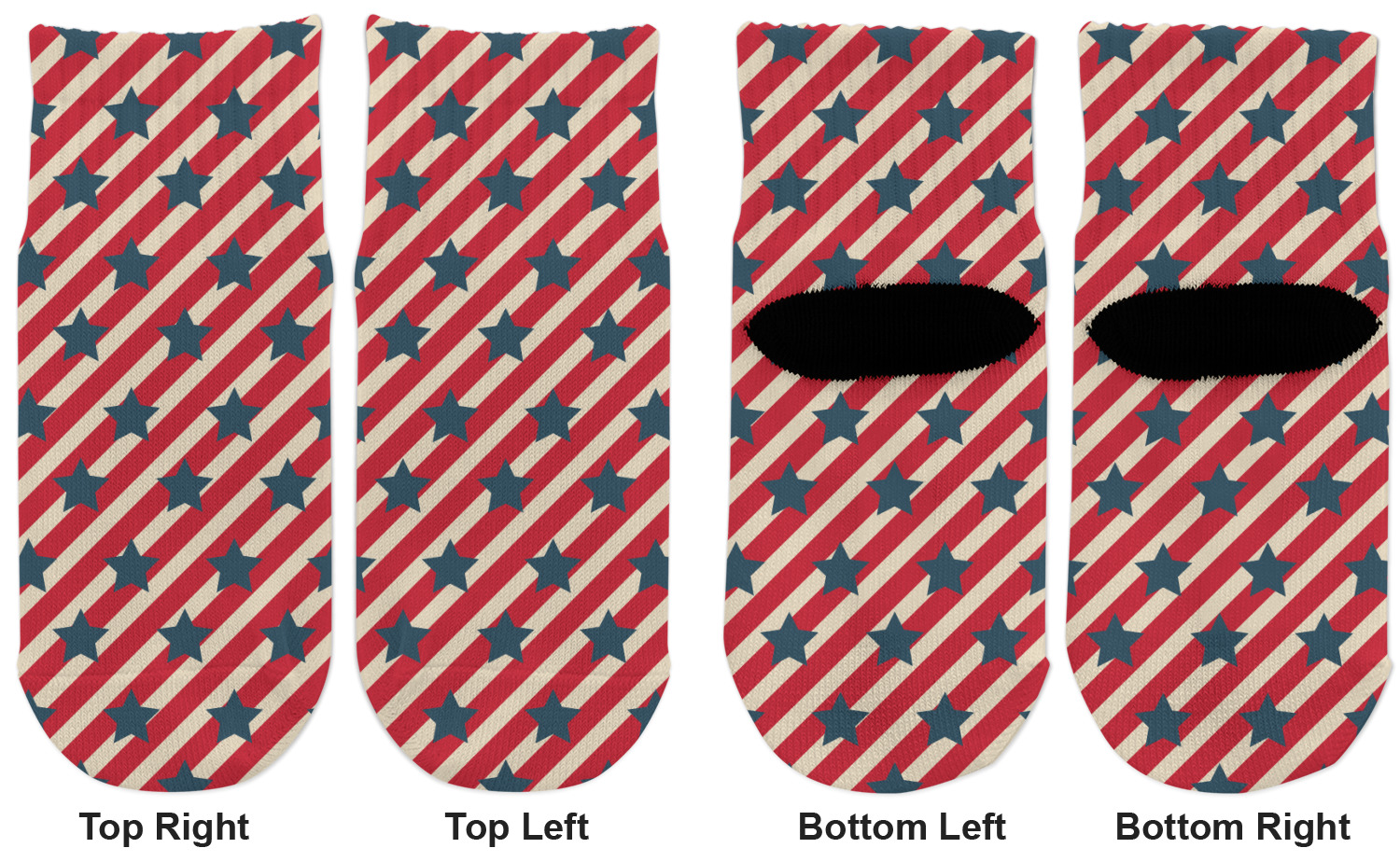These crew socks are a great find, made of polyester and spandex. They are quite comfy! They are even USA made. They fit a toddler size ranging from about 6-10. They have a black heel as well as a logo on the bottom. They have a nice ribbed top to ensure that their sock stays on their little foot.