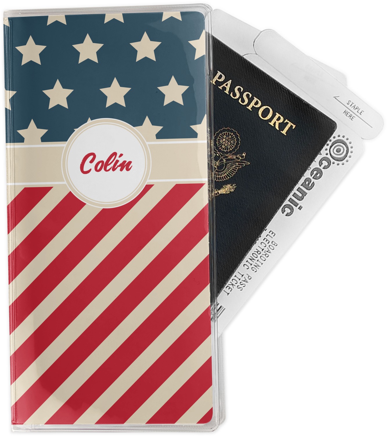 This document holder is really sturdy and has your personalized design inserted right behind all of your nifty pockets, so you can see it on the front and back covers. There are two large pockets and two shorter pockets inside. The larger pockets are tall enough to keep your boarding pass nice and straight. The smaller pockets (on top of the large pockets) are large enough to fit your passport, credit card, or ID.