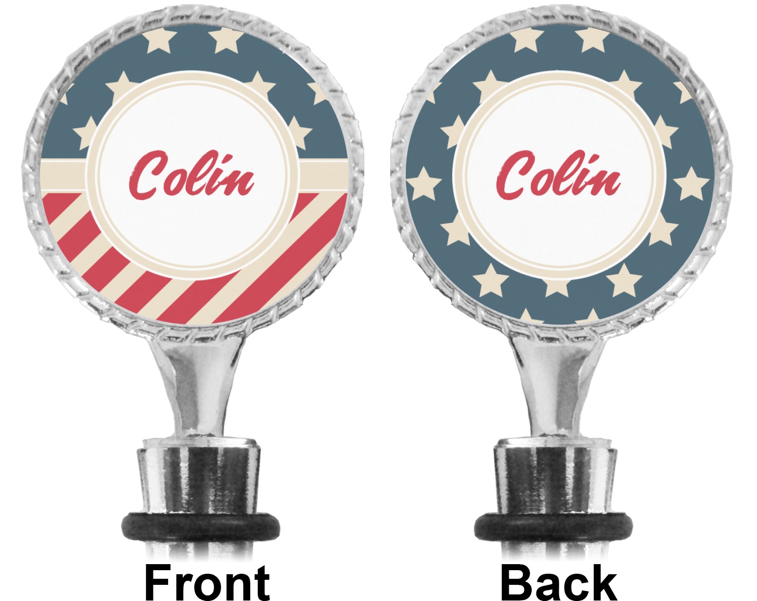 The top part of your bottle stopper is comprised of a zinc ring that displays your customization(s) in its middle, on both sides. The ring is heavy duty, with a bright chrome finish. The body of the wine stoppers have two silicone rings to provide an airtight seal. These wine bottle stoppers measure at 1.625" L x 0.8125" W x 4.625" H; your custom wine stopper is meant to fit into most standard-sized wine bottles.