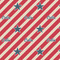 This design is a dark blue, bright red, and cream. The top half is white stars and a dark blue background, while the bottom half is a red and cream diagonal striped background. The backgrounds are divided by a cream ribbon and frame with your personalization in the middle. Have fun decorating with this classic patriotic design.