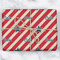 This design is a dark blue, bright red, and cream. The top half is white stars and a dark blue background, while the bottom half is a red and cream diagonal striped background. The backgrounds are divided by a cream ribbon and frame with your personalization in the middle. Have fun decorating with this classic patriotic design.