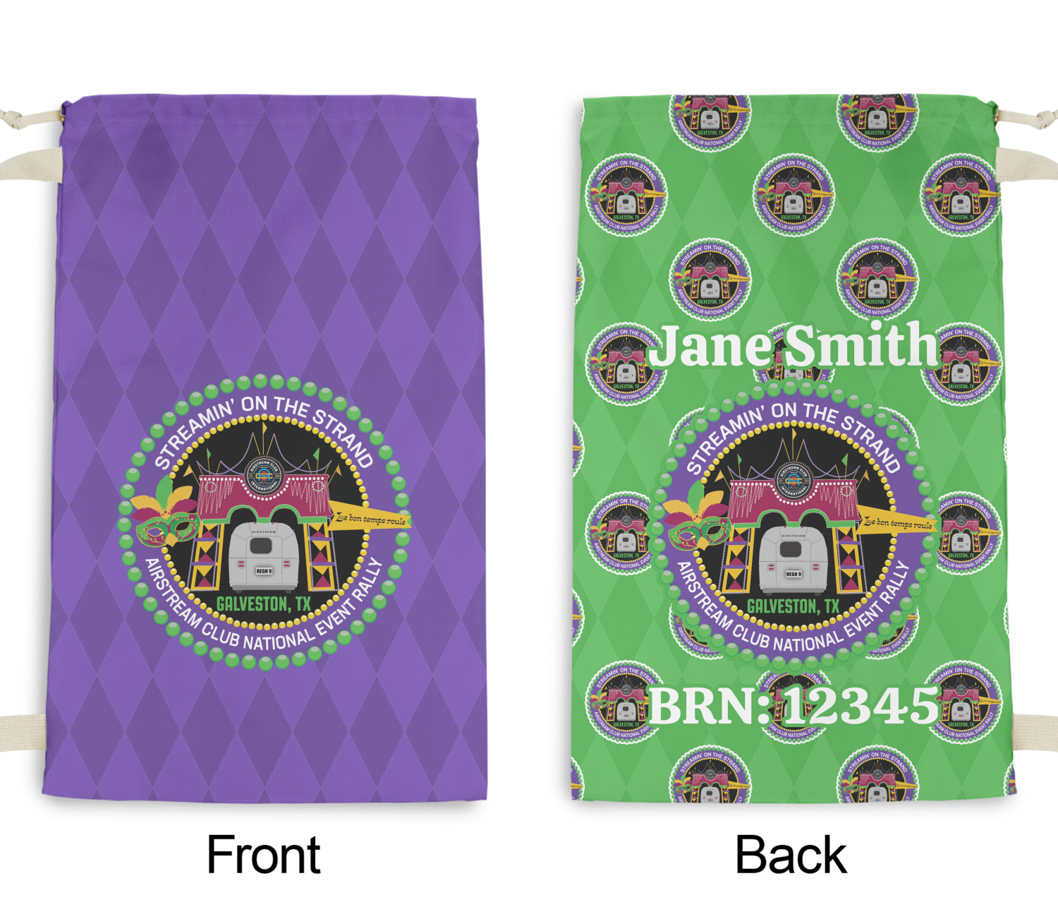 Carry your laundry in style with these customized laundry bags. Available in two sizes, featuring a natural colored woven strap and a cinch cord, these bags hold a lot of clothes or anything else you want to fit in them.