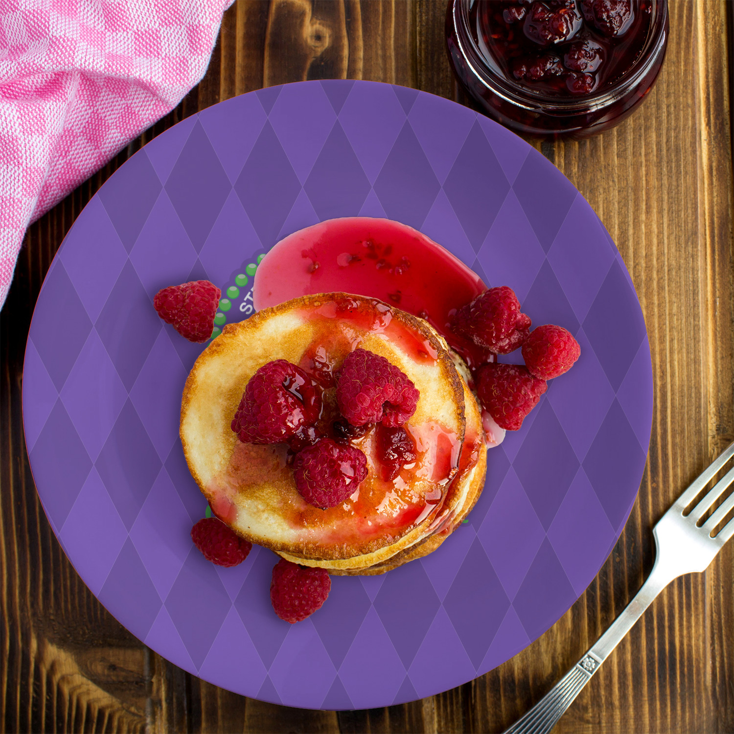 These personalized plates are free of BPA and break resistant, to survive the many drops of daily use. Your customization is displayed across the entire face of the plate, while the back of the plate remains white in color. We offer these plates in two different sizes: 8 inches and 10 inches in diameter.