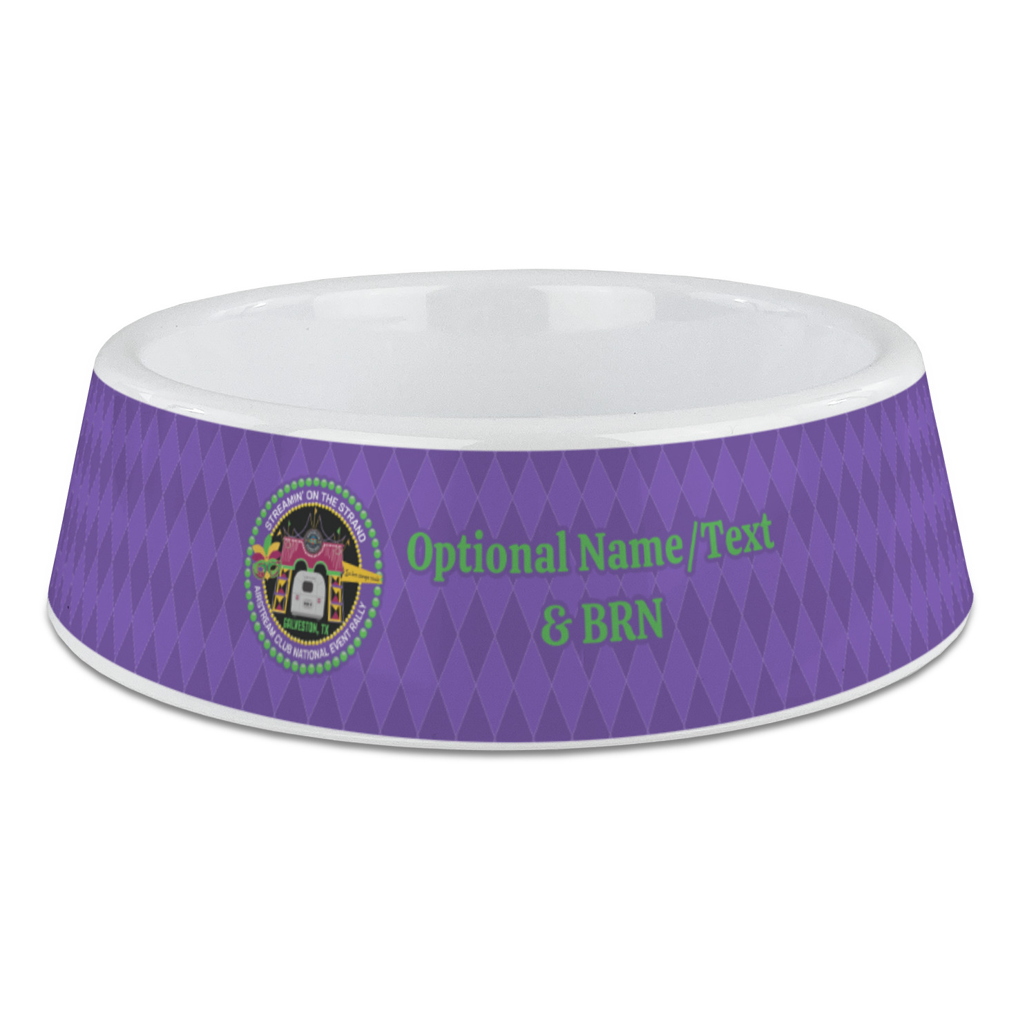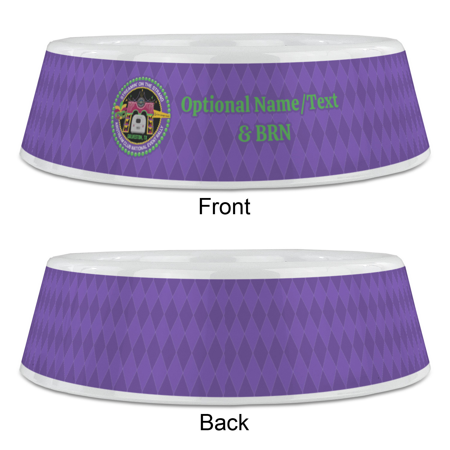 Made from a nearly indestructible composite polymer plastic these bowls come in 3 different sizes to suit any breed of dog. The small bowl measures approximately 5 in diameter and 1.75 tall and holds approximately 1.5 cups of food or water. The medium bowl measures approximately 6 in diameter and 2.25 tall and holds approximately 3 cups of food or water. The large bowl measures approximately 7.2 in diameter and 2.25 tall and holds approximately 4.5 cups of food or water. These bowls are microwave and dishwasher safe so no matter what type of food your dog eats it can be easily cleaned up for the next use. Design your own or use one of our 500 plus designs to make these pet bowls uniquely yours.