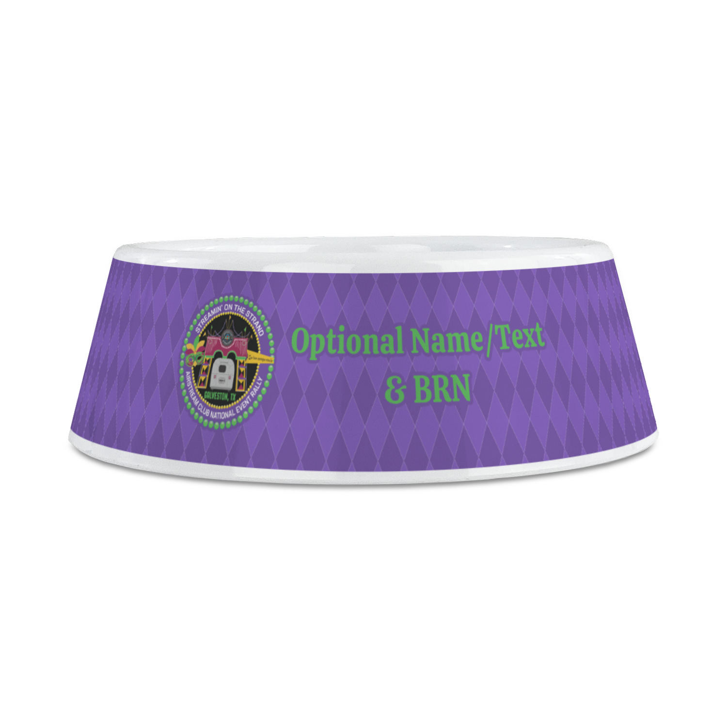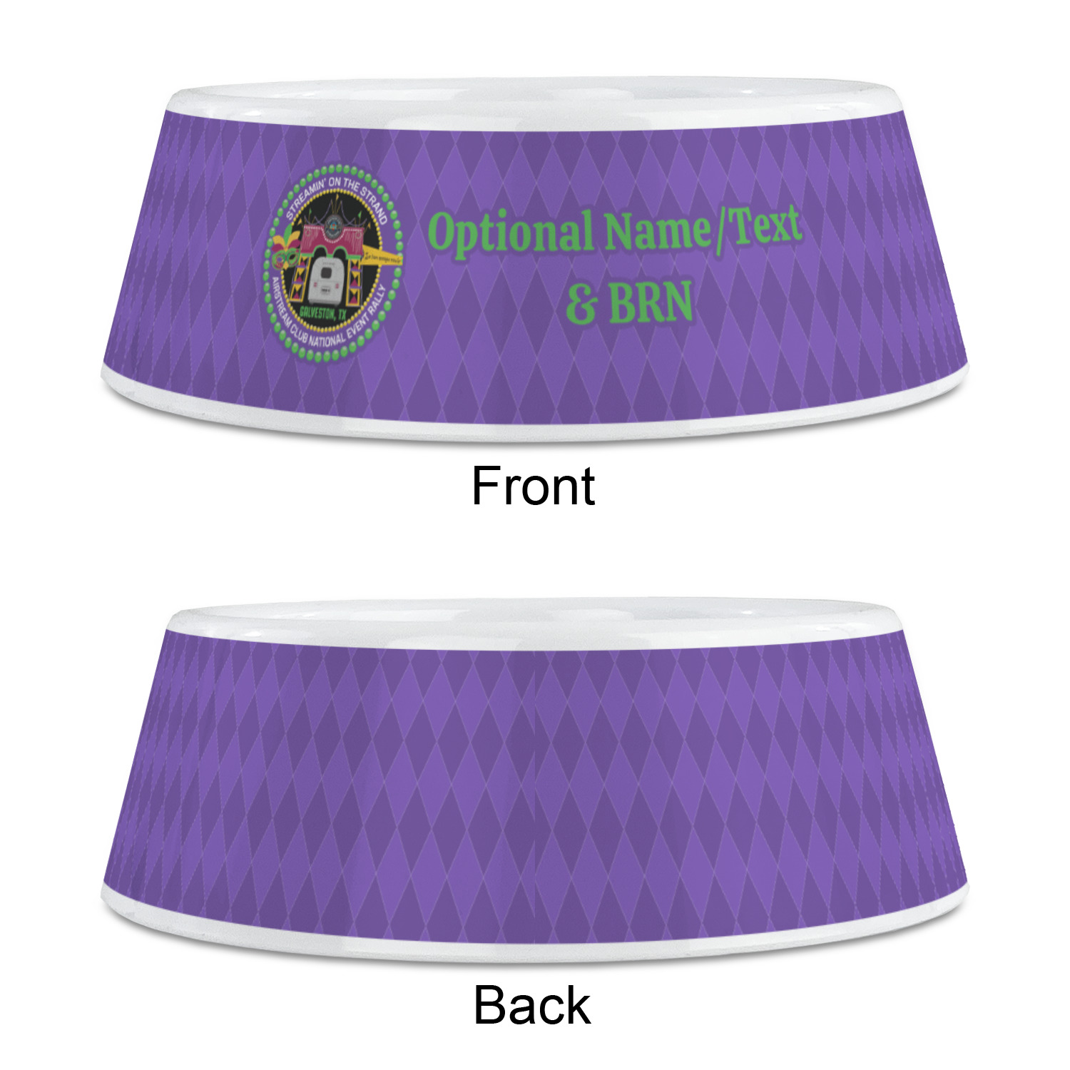 Made from a nearly indestructible composite polymer plastic these bowls come in 3 different sizes to suit any breed of dog. The small bowl measures approximately 5 in diameter and 1.75 tall and holds approximately 1.5 cups of food or water. The medium bowl measures approximately 6 in diameter and 2.25 tall and holds approximately 3 cups of food or water. The large bowl measures approximately 7.2 in diameter and 2.25 tall and holds approximately 4.5 cups of food or water. These bowls are microwave and dishwasher safe so no matter what type of food your dog eats it can be easily cleaned up for the next use. Design your own or use one of our 500 plus designs to make these pet bowls uniquely yours.