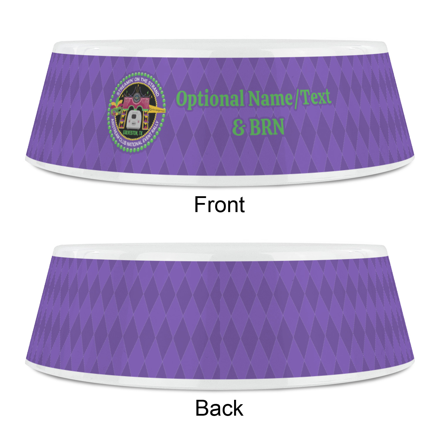 Made from a nearly indestructible composite polymer plastic these bowls come in 3 different sizes to suit any breed of dog. The small bowl measures approximately 5 in diameter and 1.75 tall and holds approximately 1.5 cups of food or water. The medium bowl measures approximately 6 in diameter and 2.25 tall and holds approximately 3 cups of food or water. The large bowl measures approximately 7.2 in diameter and 2.25 tall and holds approximately 4.5 cups of food or water. These bowls are microwave and dishwasher safe so no matter what type of food your dog eats it can be easily cleaned up for the next use. Design your own or use one of our 500 plus designs to make these pet bowls uniquely yours.