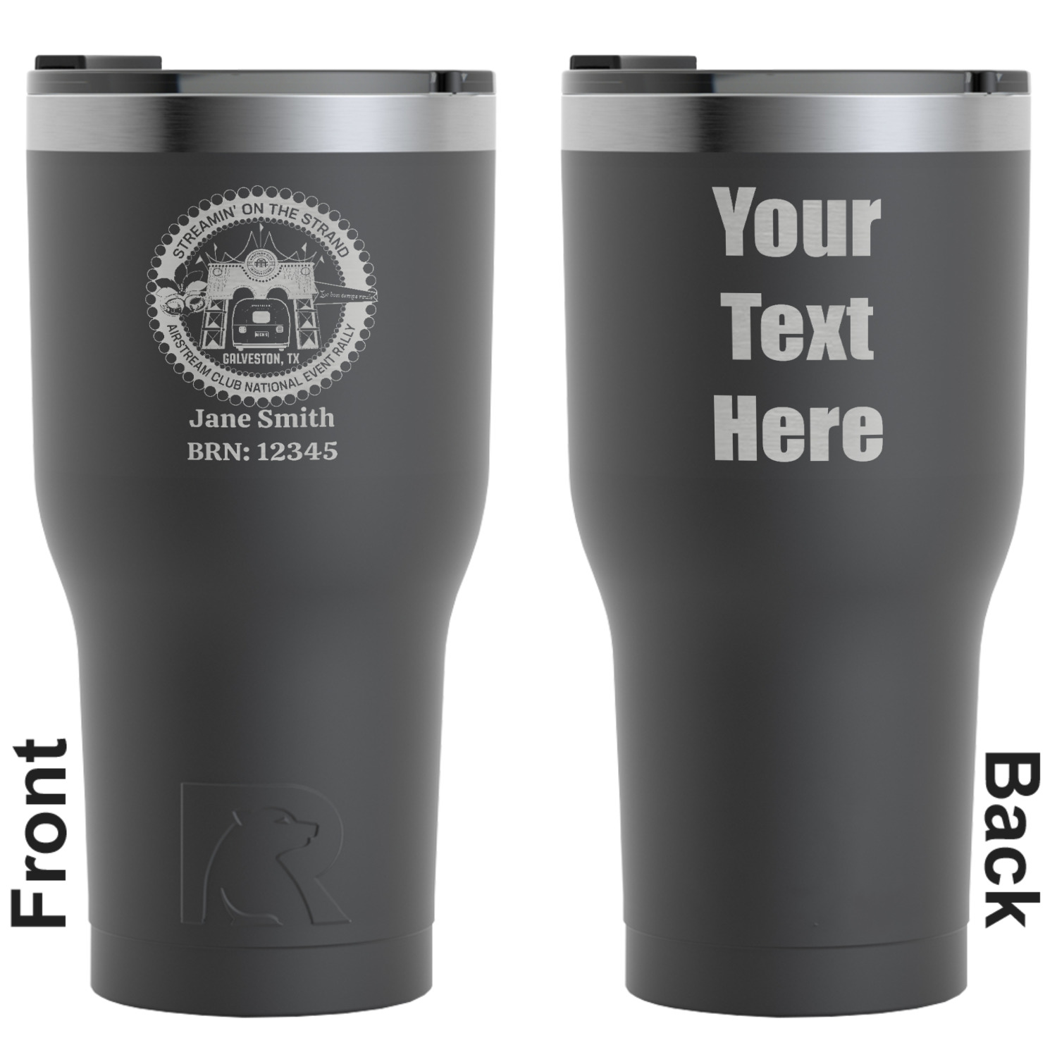 We sell these RTIC 30 Oz Tumblers in three different colors with two different engraving options. Choose from our selection of teal, white, or black. You can either choose to engrave the front only or both front and back. Your engravement will reveal the stainless steel material beneath the powder color coating, creating your personalization in a beautiful silver.