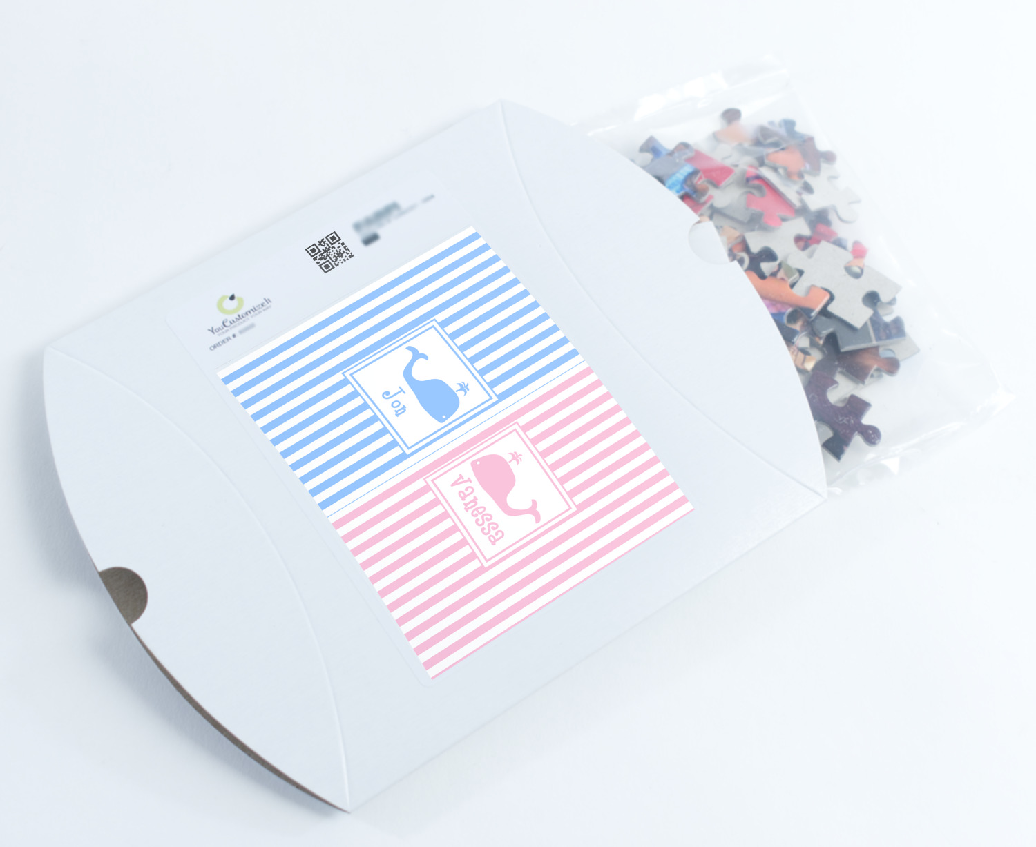 You can also upload your logo or art that you or your kids drew. To create more challenging jigsaw puzzles, you can create a pattern from with your logo or artwork. You can also add other elements such as text or personalization.