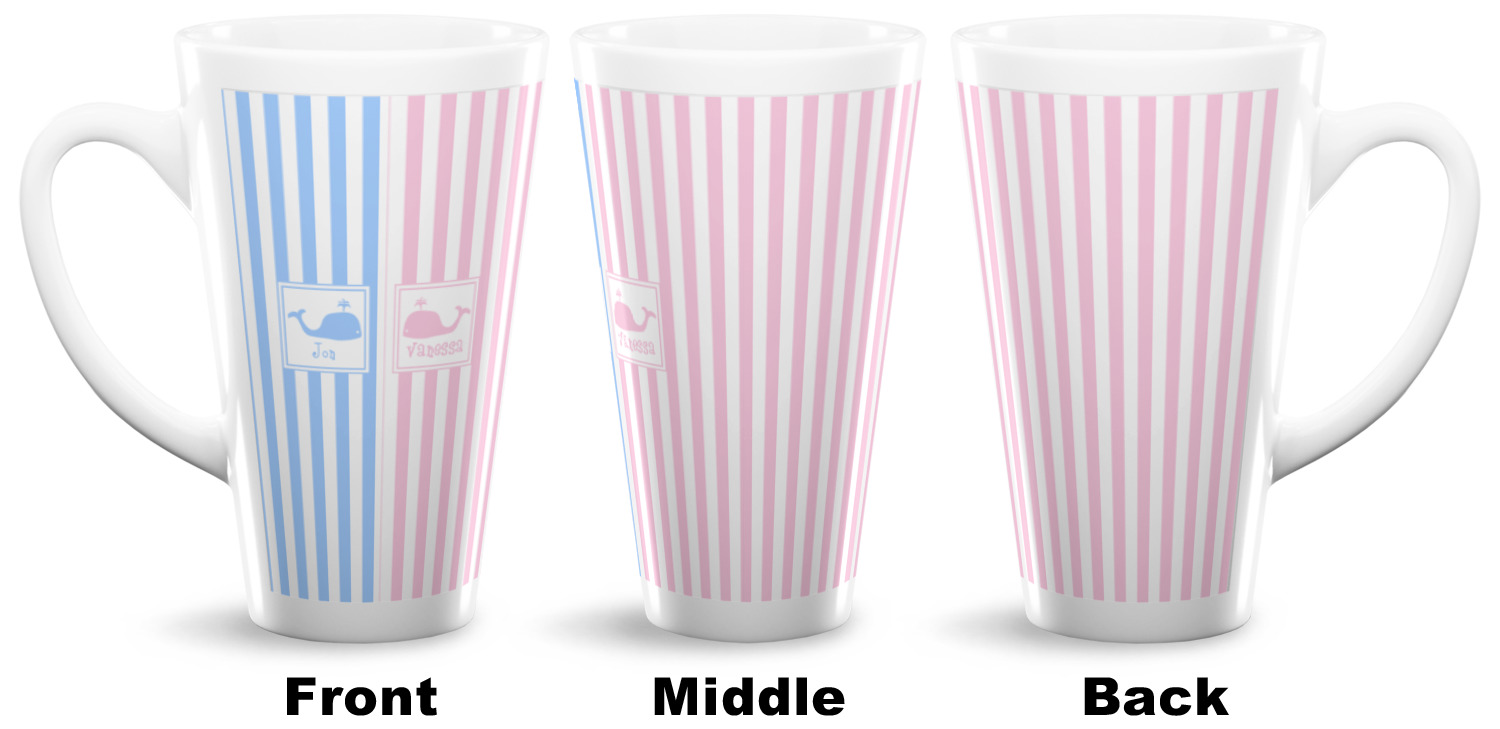 Sip and stay cozy with our custom latte mugs! Mugs are a simple gift for anyone, but make yours unique by personalizing our ceramic mugs for you and your close ones! Our tall latte mugs are great for an iced latte to start your day or the perfect size for some extra warm tea before bed! Use our smaller latte mugs to practice latte art! Browse our many designs, create your own, upload a photo or logo, and more with our online design studio!