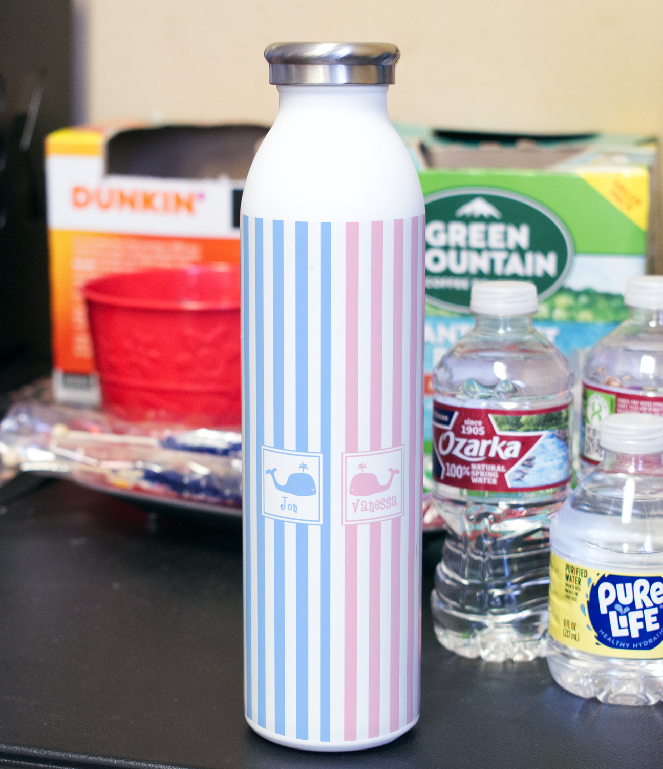 We chose to use whales as our graphics with names for personalization underneath in coordinating colors.