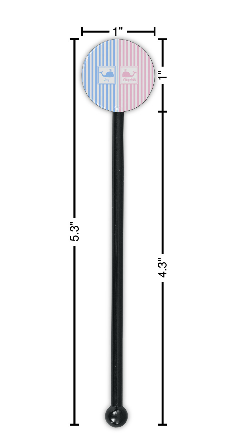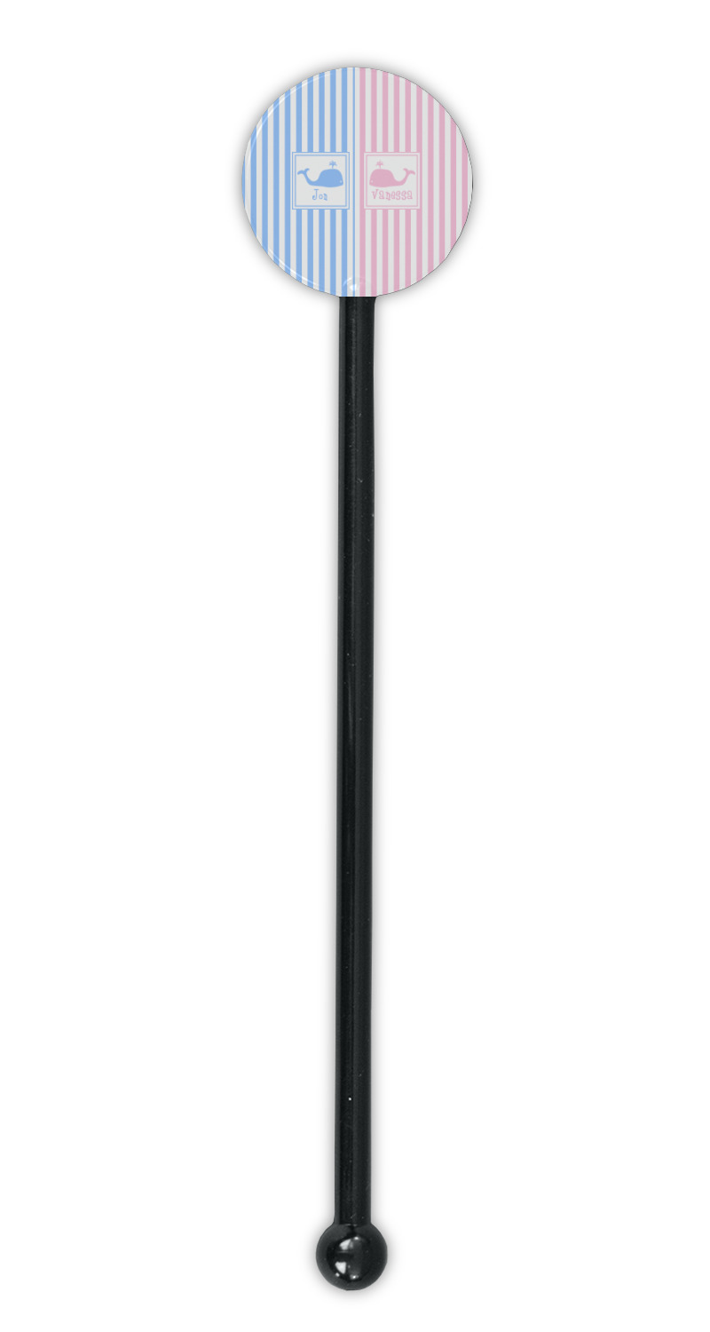 Coastal / Beach Style Designs for 5.5" Round Plastic Stir Sticks - Black - Single-Sided