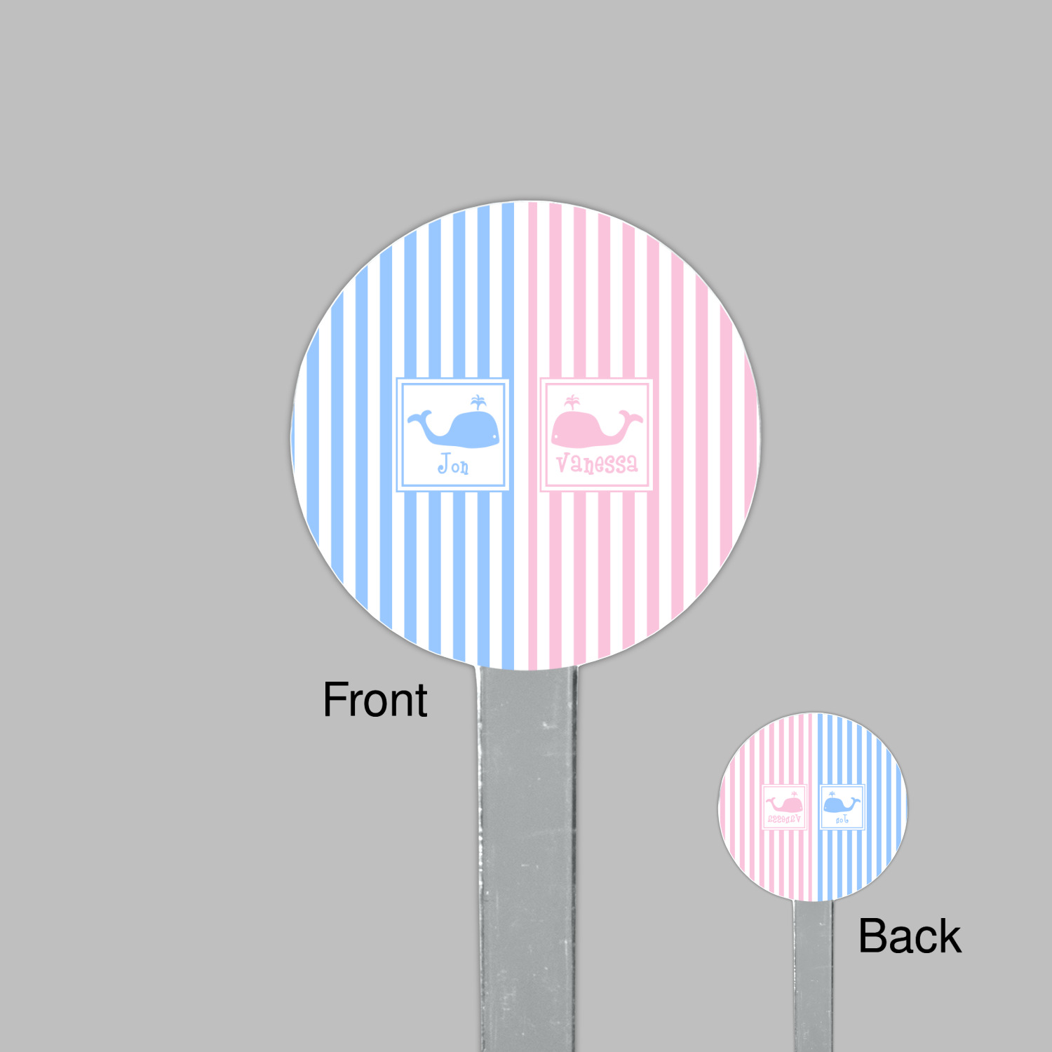 This striped design with whales is the perfect balance between masculine & feminine. It is the design style for sharing! One side is masculine with blue and the other side is feminine with pink.