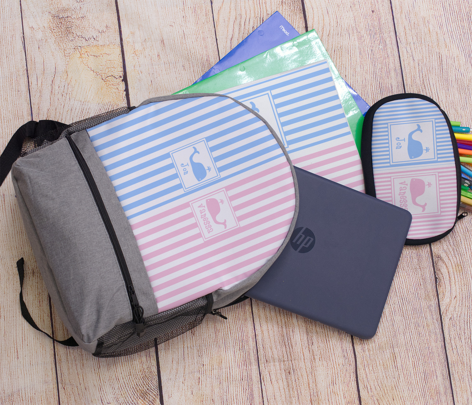 We chose to use whales as our graphics with names for personalization underneath in coordinating colors.