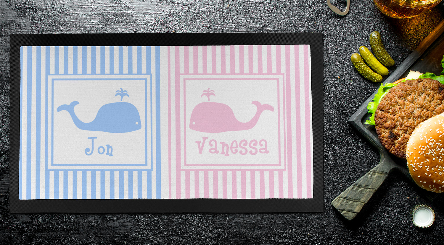 We chose to use whales as our graphics with names for personalization underneath in coordinating colors.