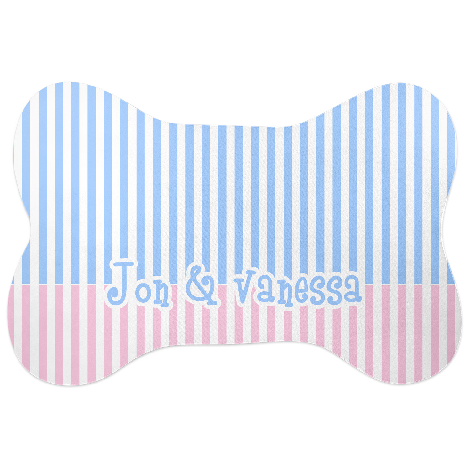 The bone-shaped dog bowl mat is the perfect way to add a touch of personality to your dog's eating area! Dogs make inevitable messes, especially when they eat and drink. Save the integrity of your floors and the time spent cleaning them by purchasing a personalized mat that catches spills!