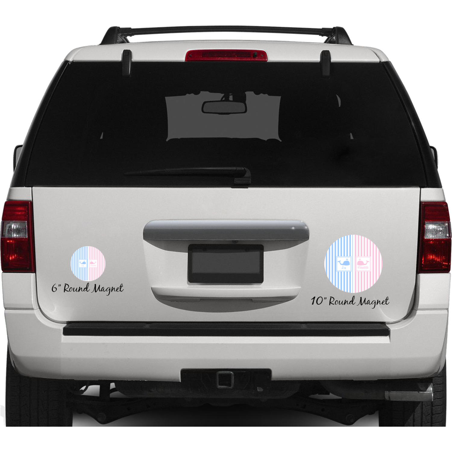 Your personalized car magnets are available for purchase in two shapes and two sizes. We carry round and square editions; each shape can either be 6 by 6 inches, or 10 by 10 inches, depending on your needs. Both versions are 1 millimeter thick, which is considered, within the industry, as the ideal thickness for automobile magnets. The magnetic car decals will adhere to any smooth, metal surface of your cars body, such as the trunk door or a side panel. However, please note that some vehicles are constructed from fiberglass bodies, which prevents the adhesion of anything magnetic. We advise that you test your vehicle before purchasing these magnets.