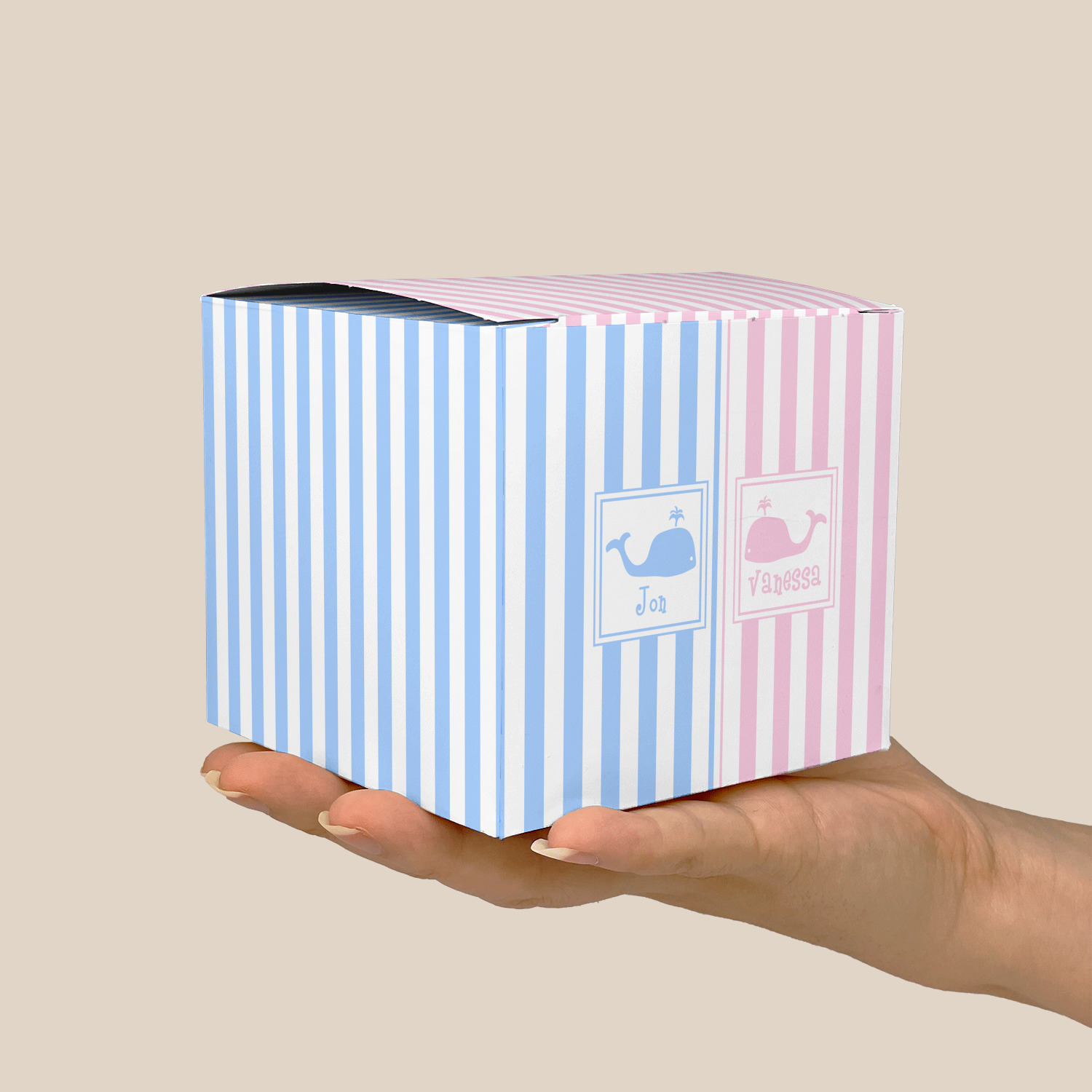 These cubic favor boxes are printed in full color on premium heavyweight cardstock that has a smooth semi-gloss finish.