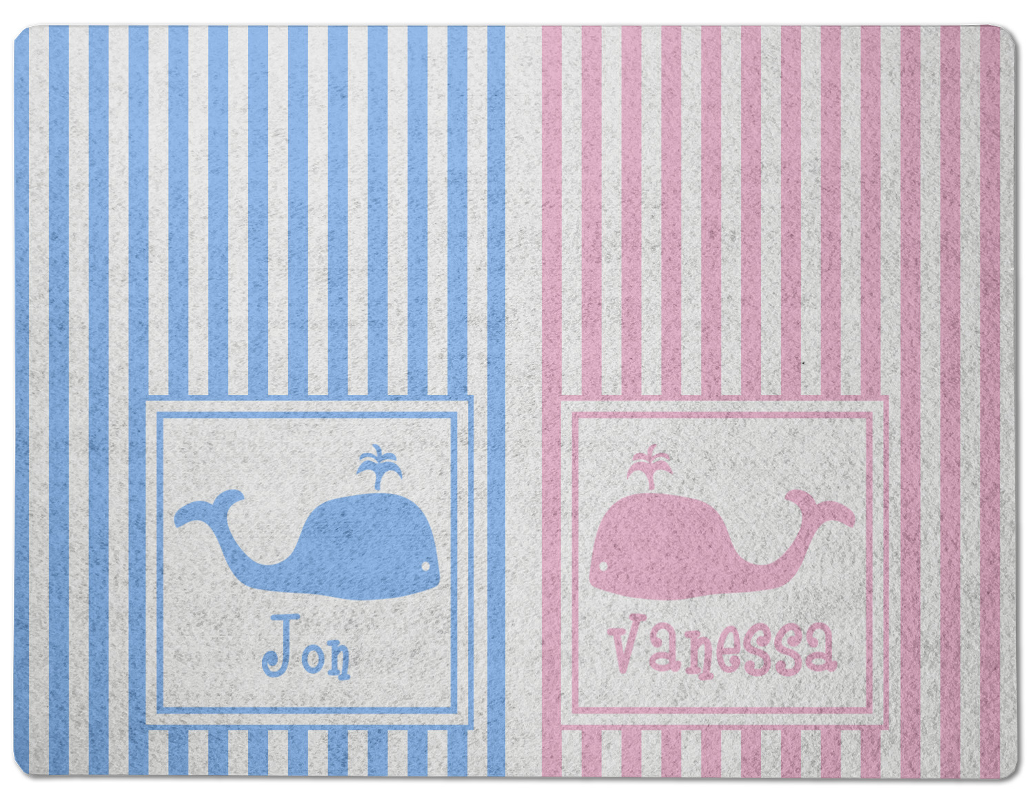 We chose to use whales as our graphics with names for personalization underneath in coordinating colors.