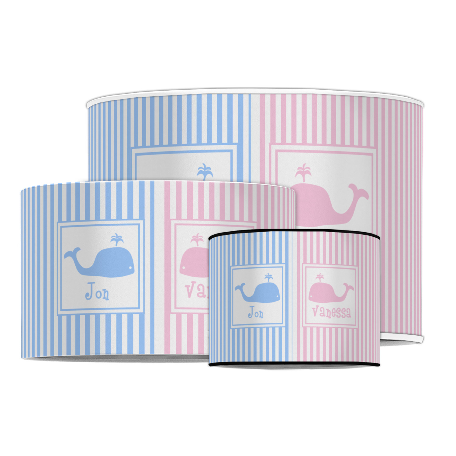 Our personalized drum lamp shades are available in 2 different materials: Poly-film or fabric. Poly-film lamp shades come with the option of white or black border trims to best match your customized design. Fabric lamp shades are finished with a rolled edge for a clean modern look.