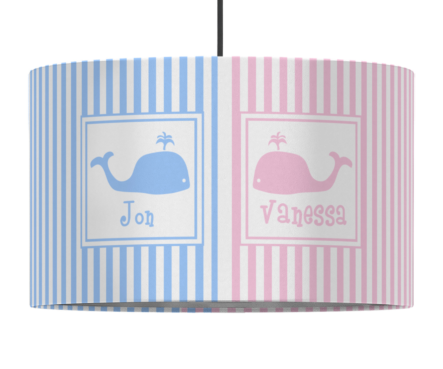 These pendant lampshades are in a cylindrical, drum shape. Available in 2 sizes - 16 inch diameter and a height of 10 inches or 12 inch diameter with a height of 8 inches, this lantern pendant light will not go unnoticed in your home. The interior of this light shade is made of flexible, smooth plastic, and the base color of the lamp is white. Your personalization is displayed on the exterior of this custom lampshade. The fabric shades the fabric fully wraps the ring for a sleek look. Your purchase includes a 12 foot long cord that has a convenient on and off switch attached, the cord is black in color with a tasteful cloth covering over the cord to add the sophisticated look to this light fixture. This lamp can fit a 60 or 75 watt light bulb, but the bulb is not included. Please scroll through the images above to learn more about the structure and shaping of this lamp compared to the other ones we offer.