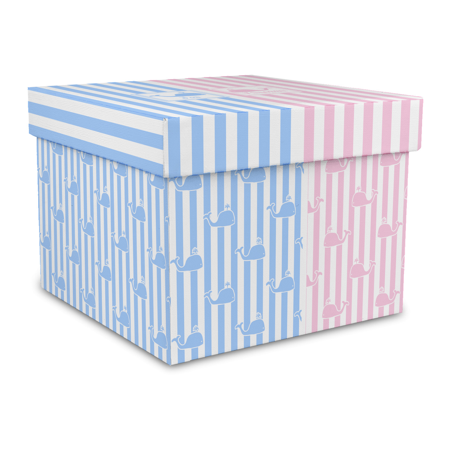 This striped design with whales is the perfect balance between masculine & feminine. It is the design style for sharing! One side is masculine with blue and the other side is feminine with pink.