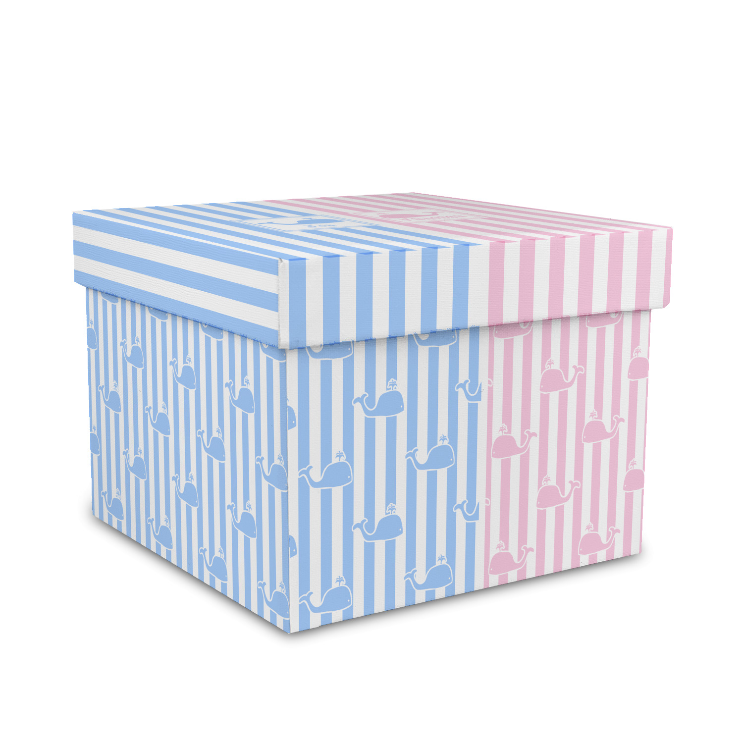 This striped design with whales is the perfect balance between masculine & feminine. It is the design style for sharing! One side is masculine with blue and the other side is feminine with pink.
