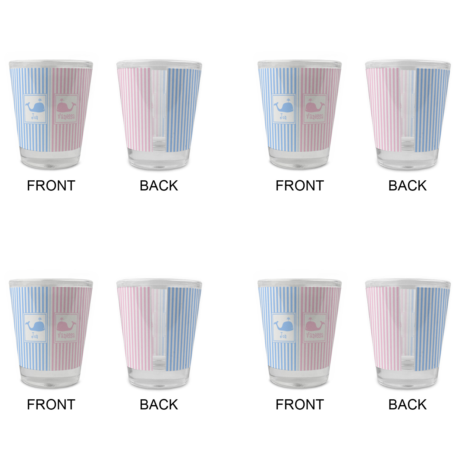Made with frosted glass, these shot glasses are printed in full color with the design of your choice. They are a standard 1.5oz shot glass and are 2.4" tall. The print is wrapped around the shot glass in a full wrap and boldly displays your customization.