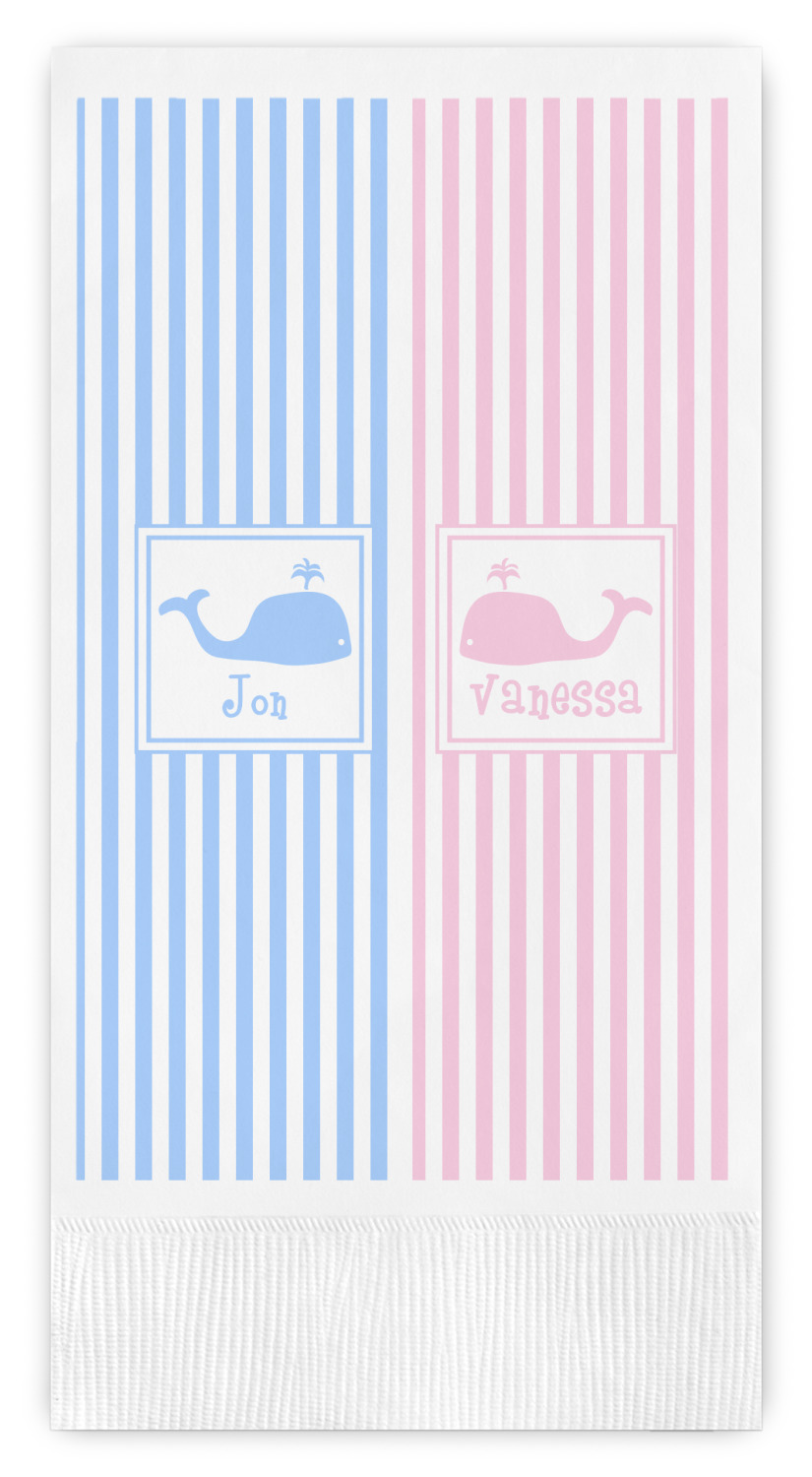 This striped design with whales is the perfect balance between masculine & feminine. It is the design style for sharing! One side is masculine with blue and the other side is feminine with pink.