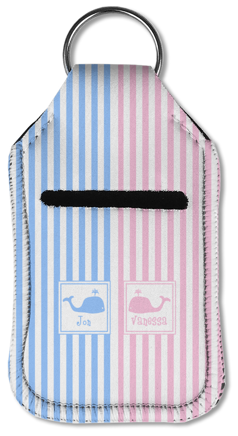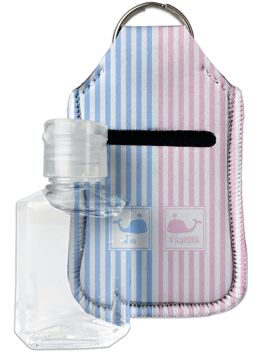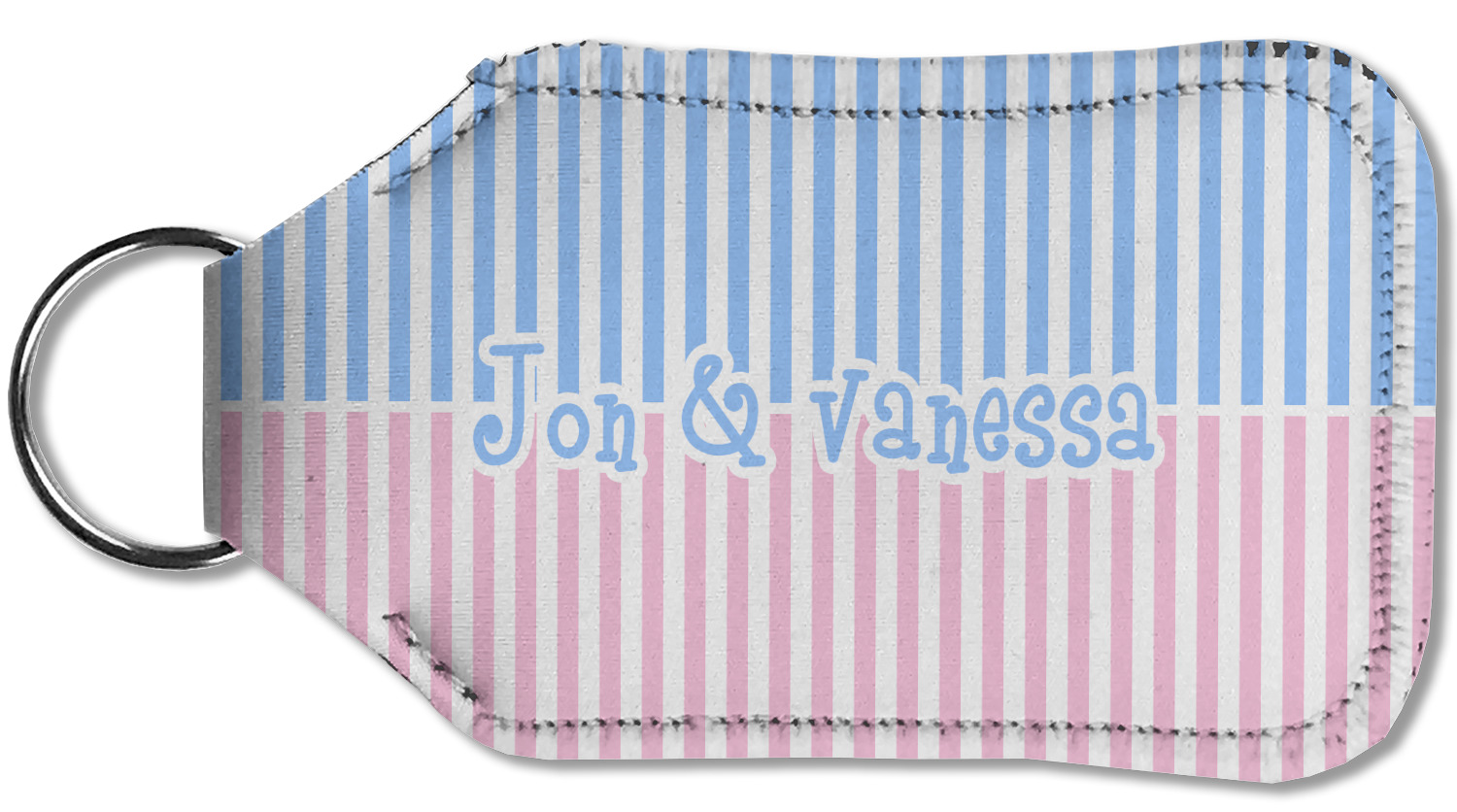 Each hand sanitizer holder comes with its own empty travel-sized, refillable hand sanitizer sure to fit snug in your customized sanitizer case! Our hand sanitizer cases are a durable, yet soft neoprene material sure to last any daily activities or travel agenda. Customize and personalize a hand sanitizer bottle holder with one of our two sizes - small (4.25" x 2.25") or large (5.5" x 2.5"). Each travel sanitizer holder comes with a keyring for attachment on bags, keys, or more!
