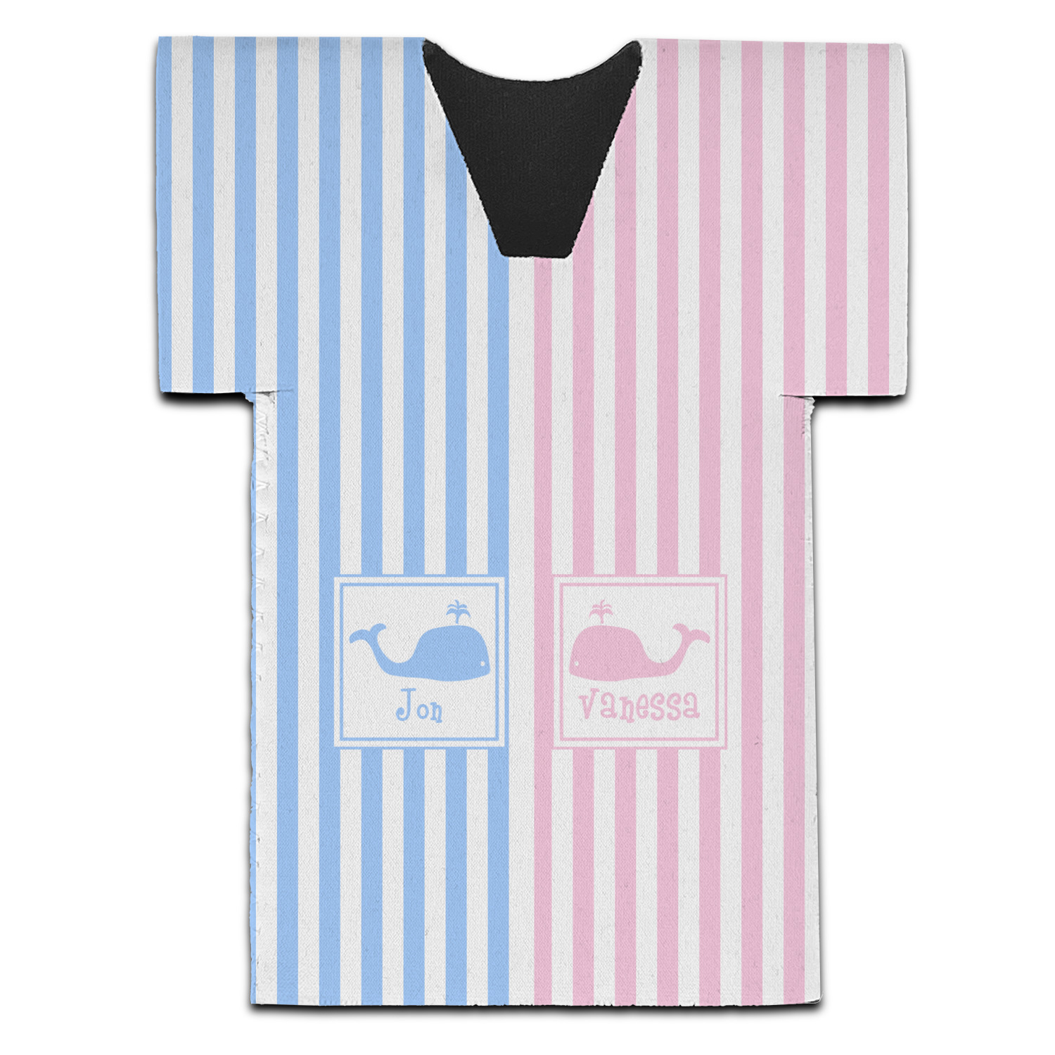This striped design with whales is the perfect balance between masculine & feminine. It is the design style for sharing! One side is masculine with blue and the other side is feminine with pink.