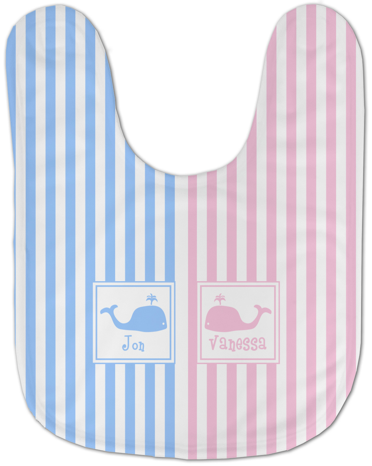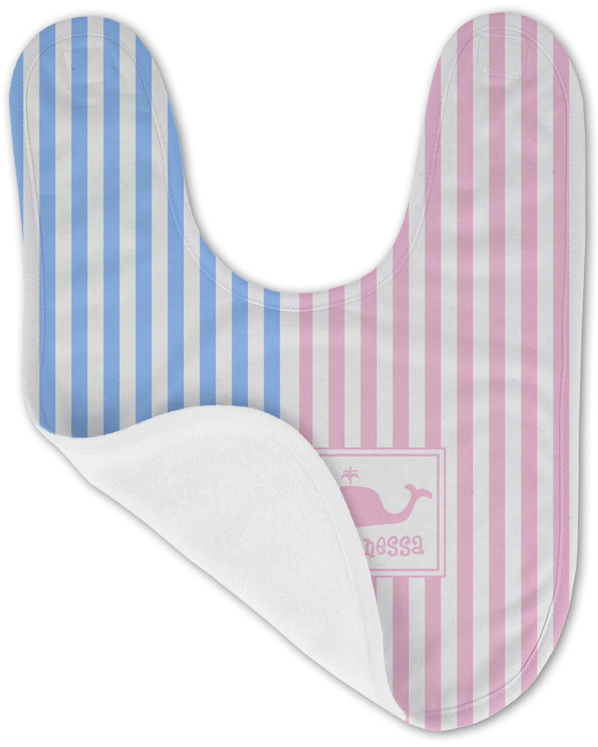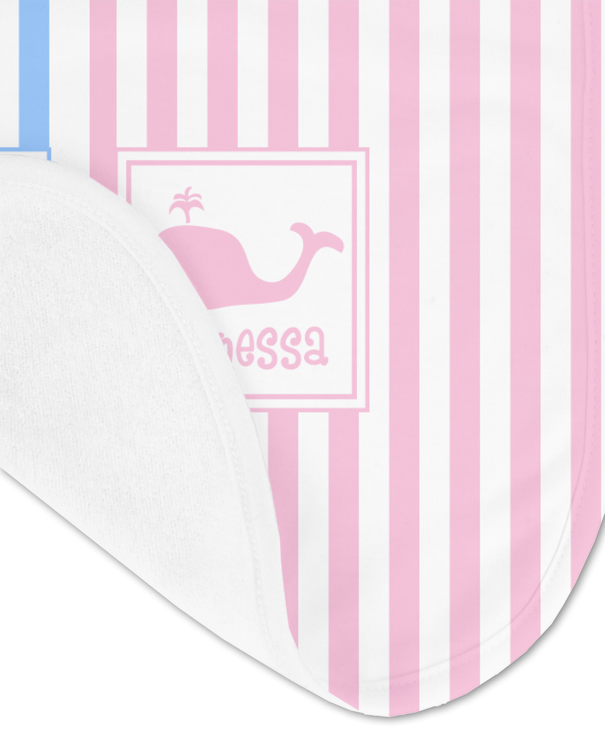 This striped design with whales is the perfect balance between masculine & feminine. It is the design style for sharing! One side is masculine with blue and the other side is feminine with pink.