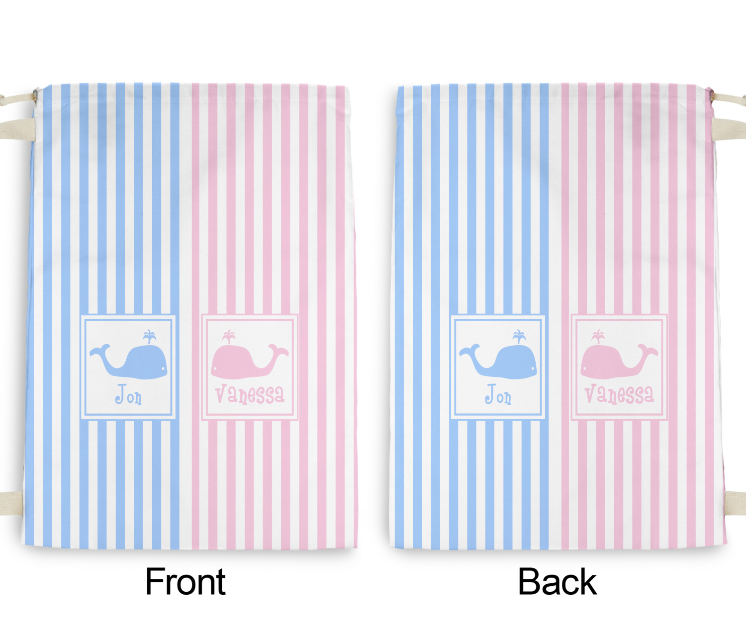 We chose to use whales as our graphics with names for personalization underneath in coordinating colors.