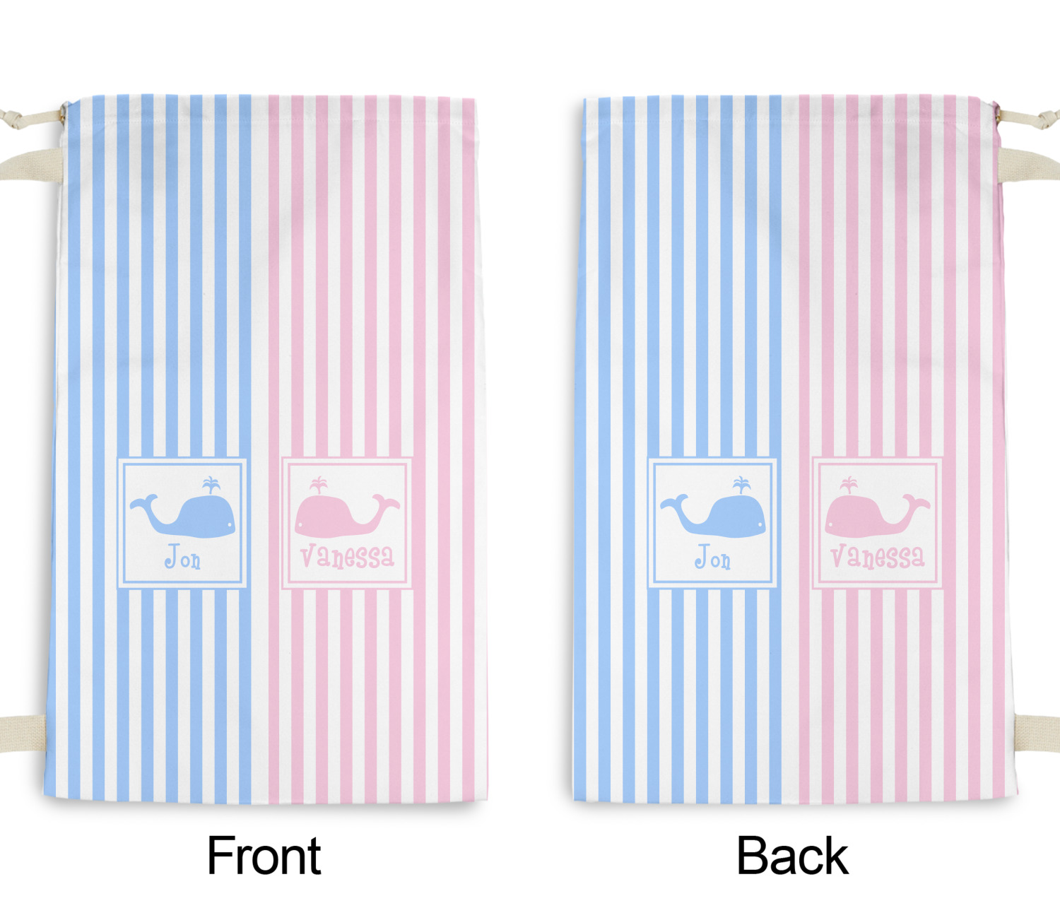 We chose to use whales as our graphics with names for personalization underneath in coordinating colors.