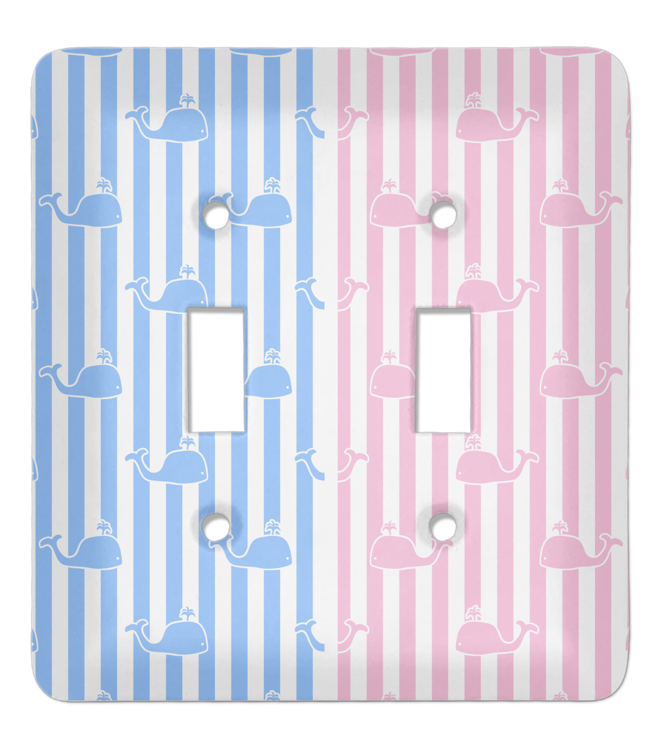 This striped design with whales is the perfect balance between masculine & feminine. It is the design style for sharing! One side is masculine with blue and the other side is feminine with pink.