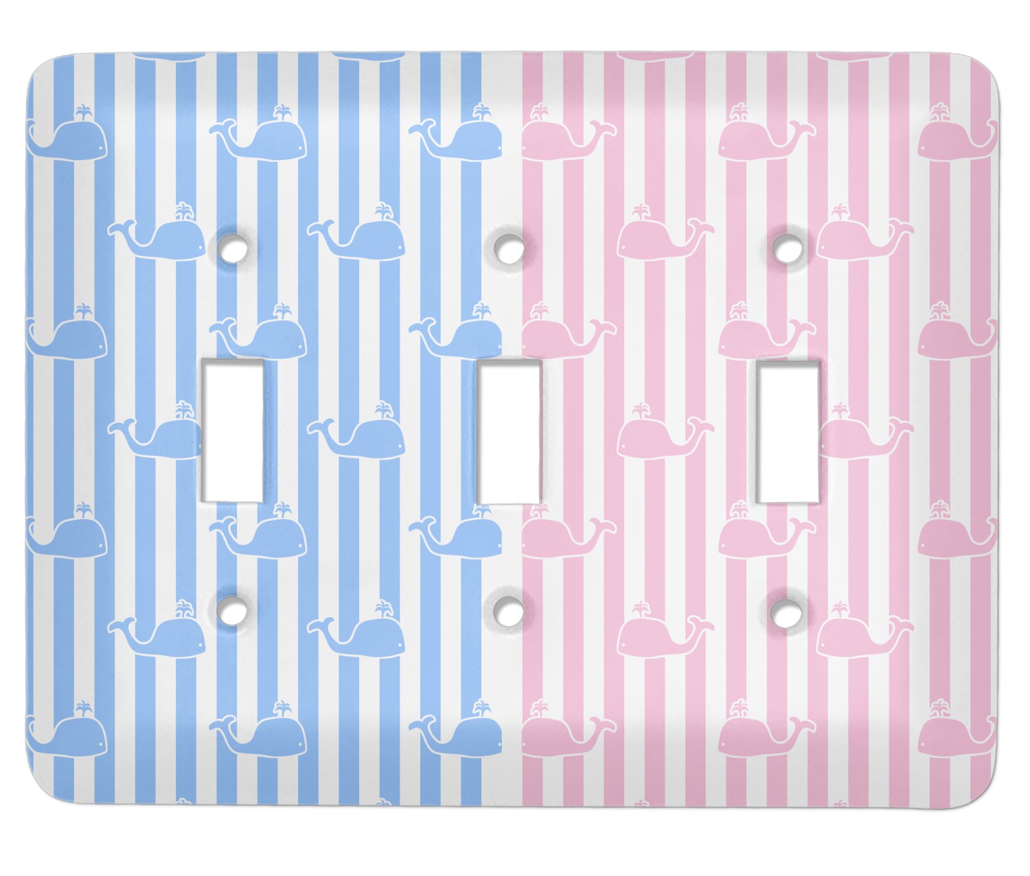 This striped design with whales is the perfect balance between masculine & feminine. It is the design style for sharing! One side is masculine with blue and the other side is feminine with pink.
