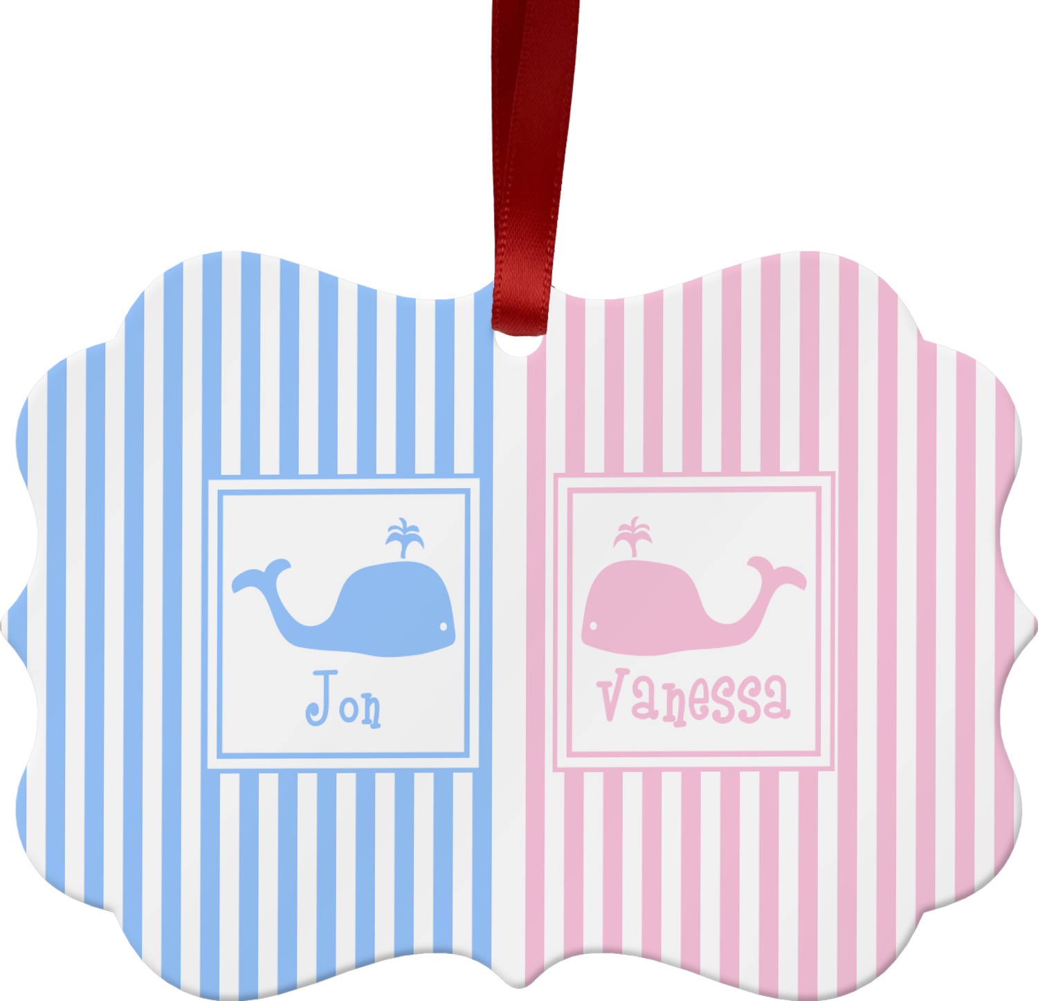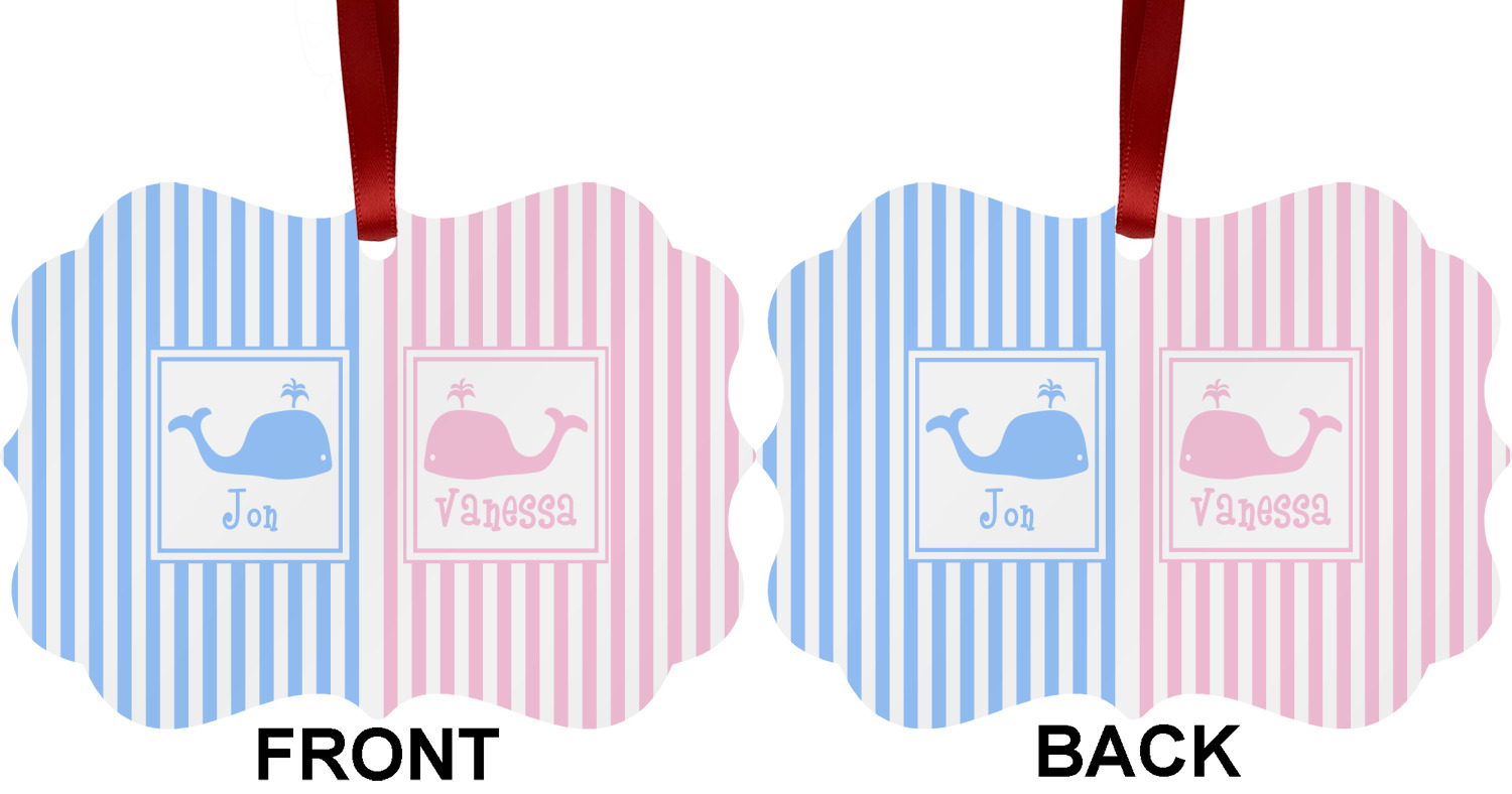 This striped design with whales is the perfect balance between masculine & feminine. It is the design style for sharing! One side is masculine with blue and the other side is feminine with pink.