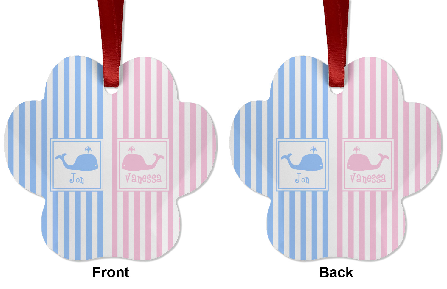 We offer double-sided printing on our personalized metal ornaments all with a gloss finish to make sure your Christmas tree continues to illuminate through the night. We offer 4 different metal ornament shapes to help express yourself or loved ones! Choose from our ball, paw print, star, or frame metal ornaments. Each metal ornament is an aluminum material sure to last you as many years as needed to share the joy and warmth of the holiday. We pair each customizable ornament with a red ribbon to tie your ornament and hang on your Christmas tree!