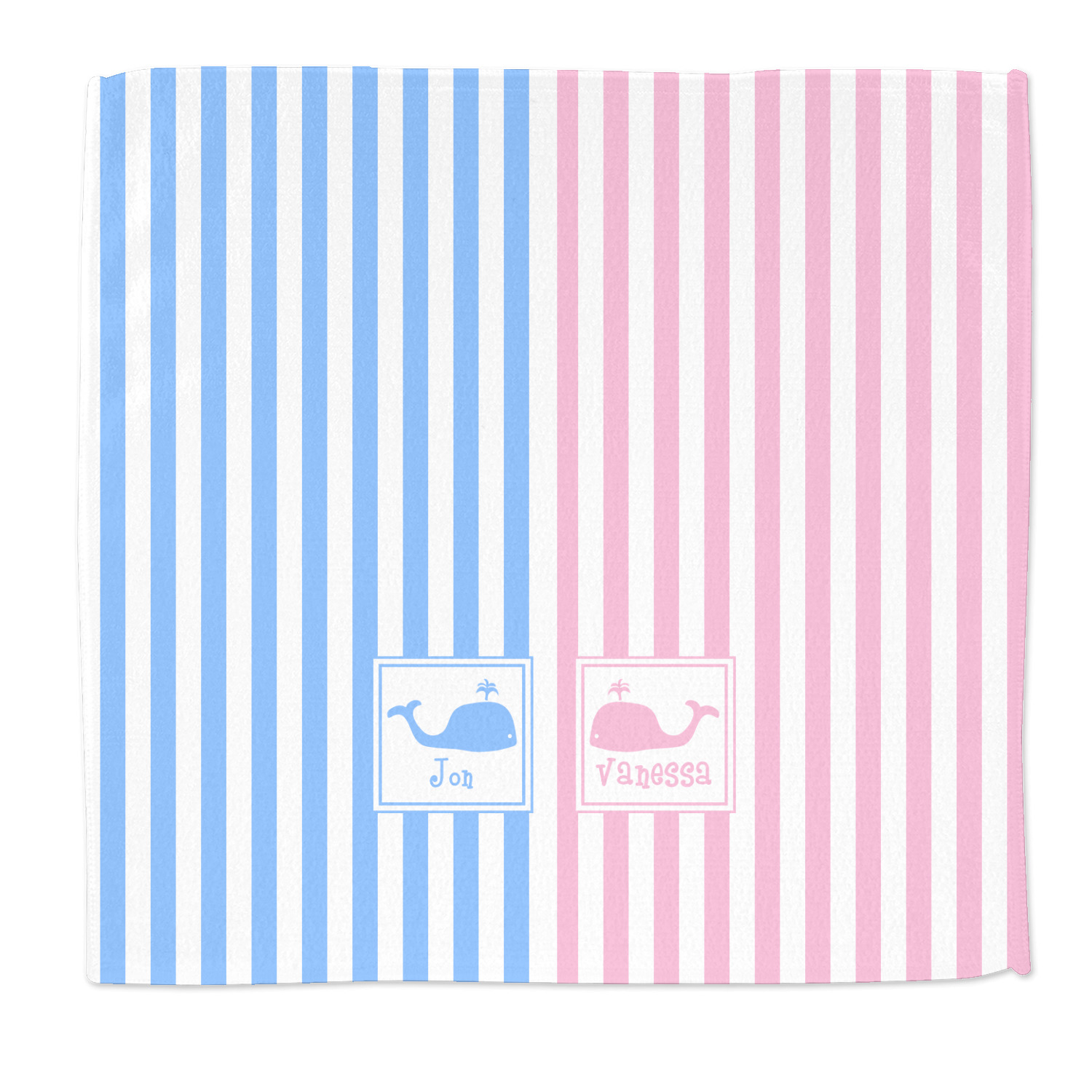 This striped design with whales is the perfect balance between masculine & feminine. It is the design style for sharing! One side is masculine with blue and the other side is feminine with pink.