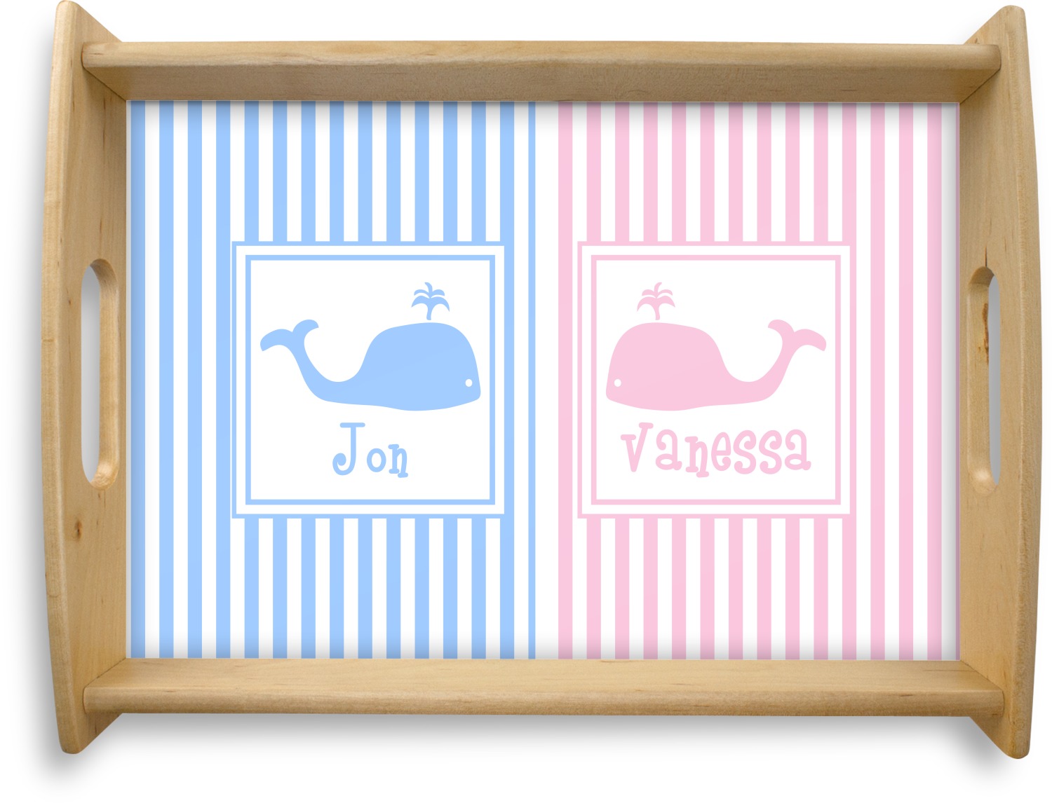 We chose to use whales as our graphics with names for personalization underneath in coordinating colors.