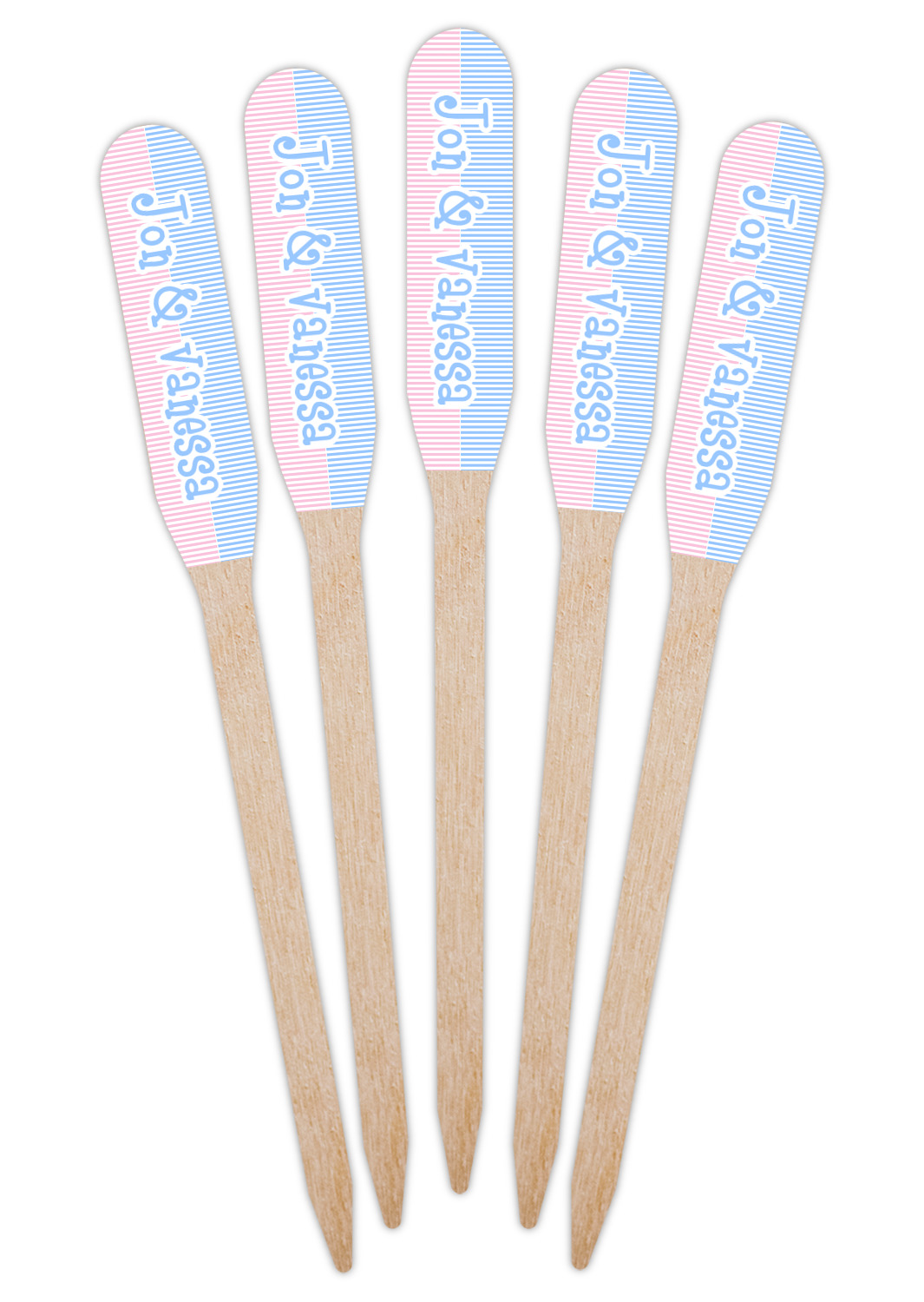 Our paddle style food & drink picks are available in 2 print styles - single sided and double sided.