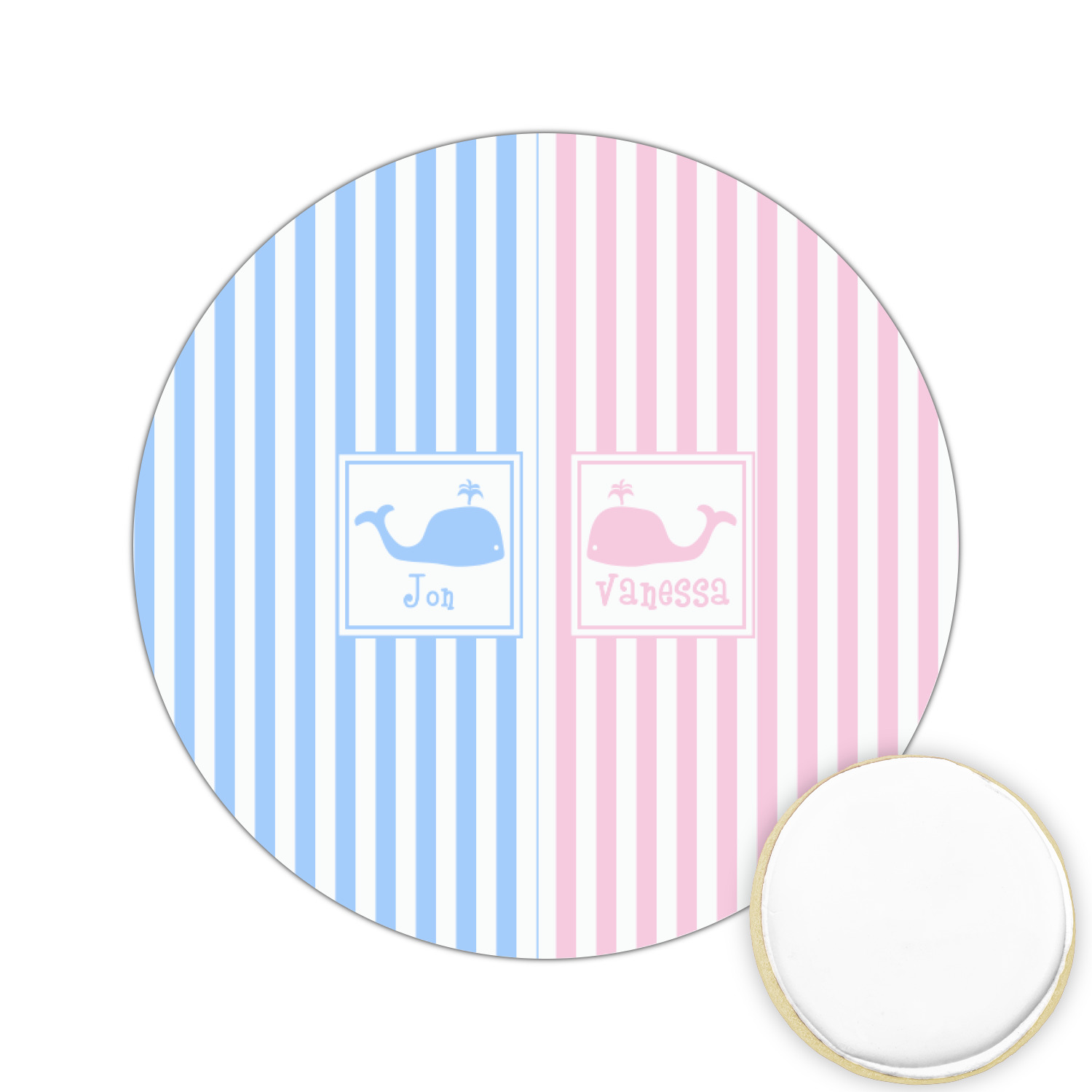 This striped design with whales is the perfect balance between masculine & feminine. It is the design style for sharing! One side is masculine with blue and the other side is feminine with pink.