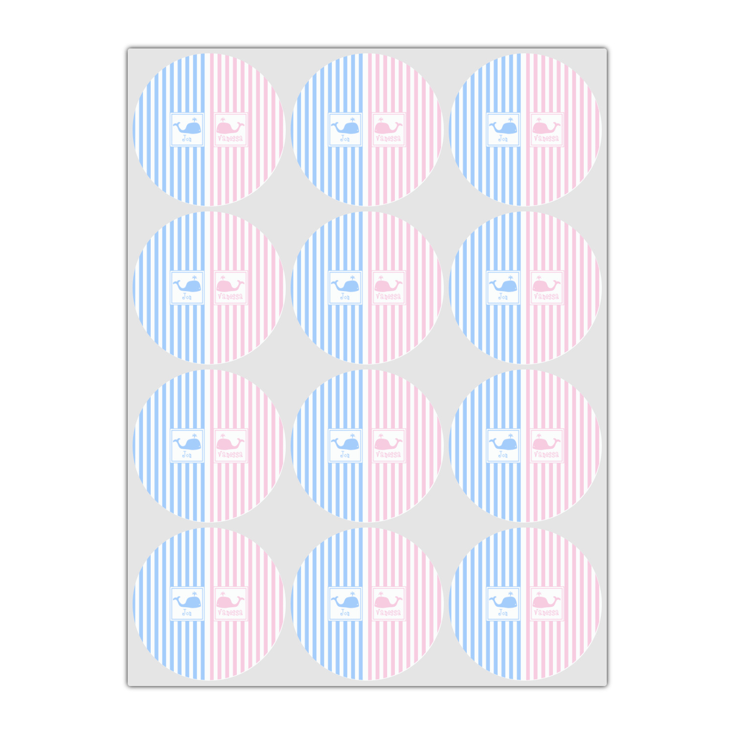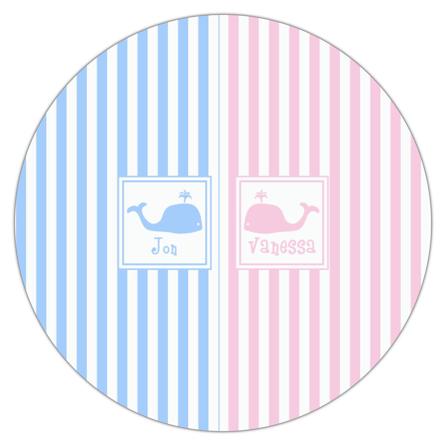 We chose to use whales as our graphics with names for personalization underneath in coordinating colors.