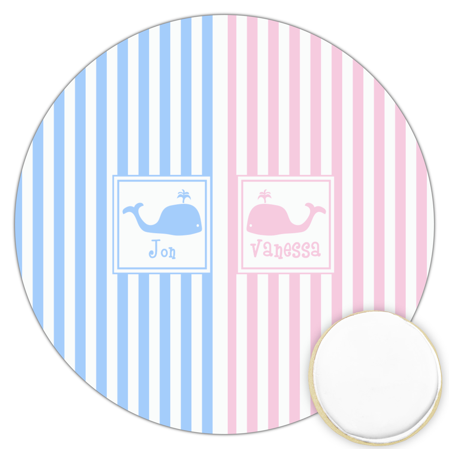 This striped design with whales is the perfect balance between masculine & feminine. It is the design style for sharing! One side is masculine with blue and the other side is feminine with pink.