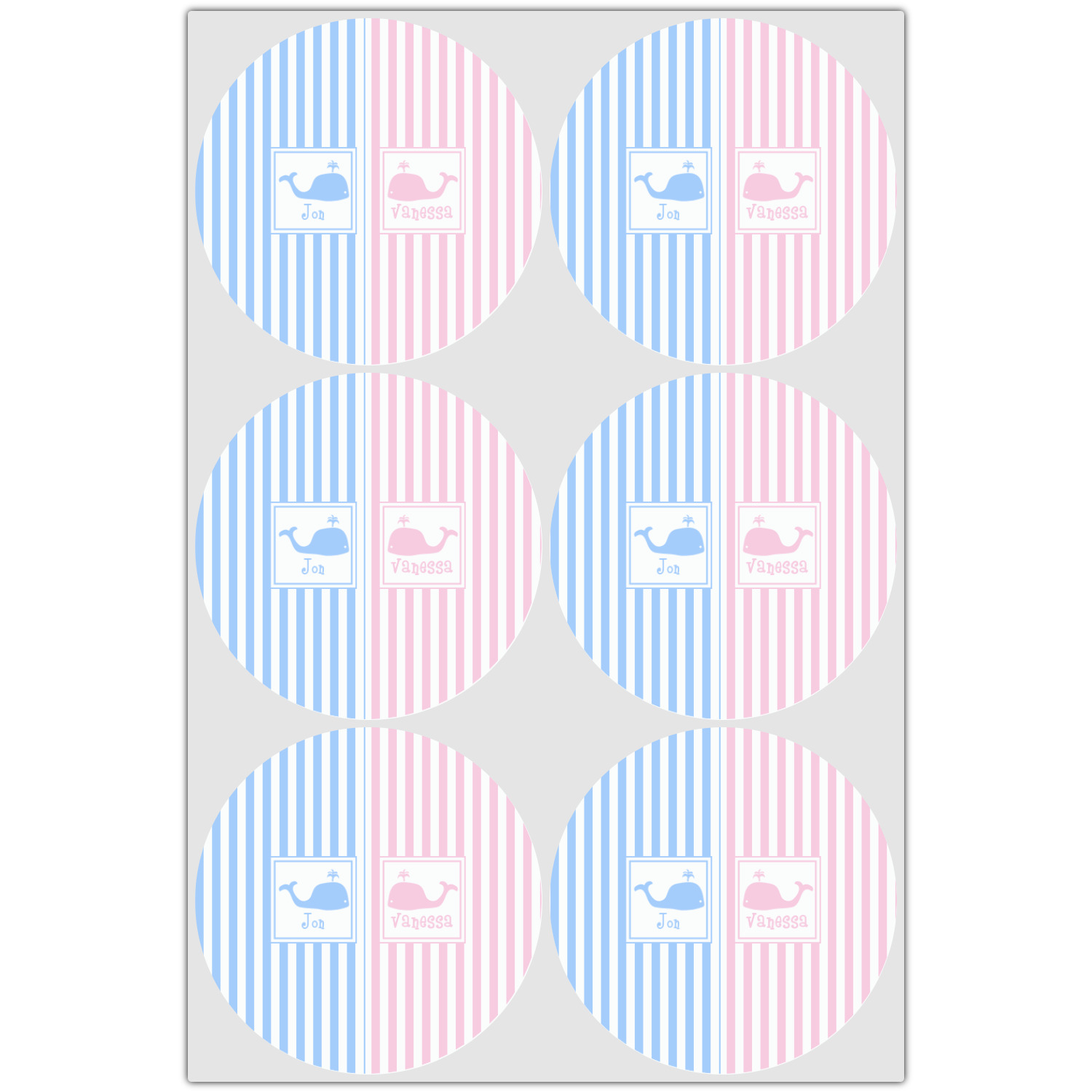 We chose to use whales as our graphics with names for personalization underneath in coordinating colors.